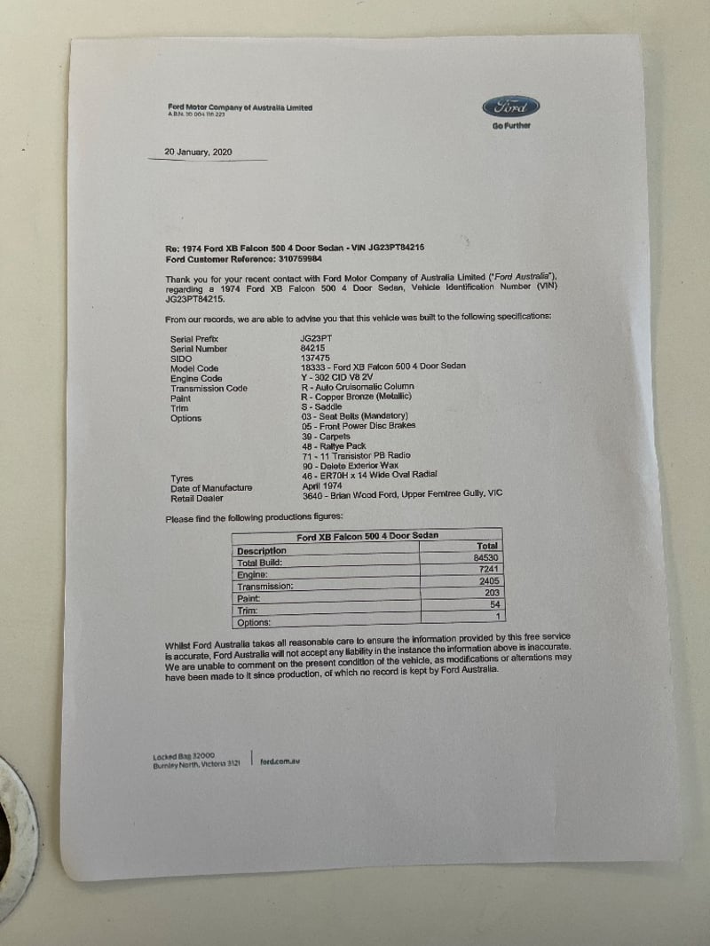 This XB Falcon 500 presents as a highly original example of Ford Australia’s iconic mid‑1970s family sedan, retaining its factory specification throughout. The vehicle is accompanied by a Ford report, supporting its originality and history. Notably, the interior remains original, further enhancing its authenticity and appeal to collectors.