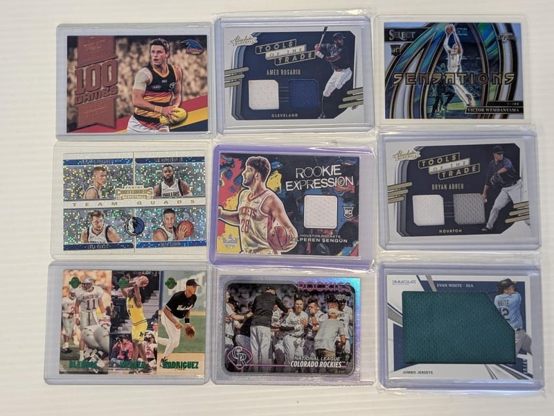 TRADING CARDS, INCLUDING 2021 BOWMAN INCEPTION ROOKIE BLUE AUTOGRAPH, 2023-24 PANINI SELECT SENSATIONS AND MORE