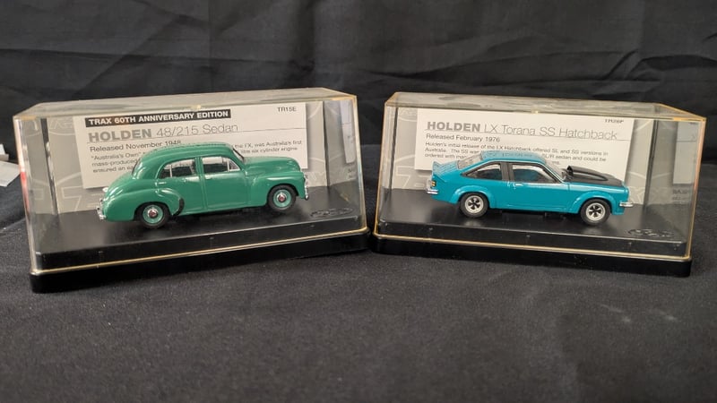 Trax Die Cast Model Cars including Holden 48/215 Sedan Trax 60th Anniversary Edition TR15E and Holden LX Torana SS Hatchback TR28F
