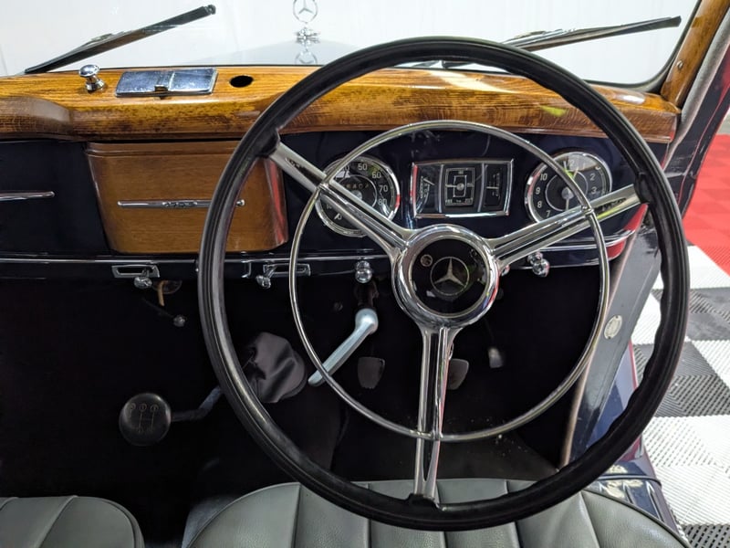This example presents as a classic, traditionally styled Mercedes with timeless proportions and period character. Its rear‑wheel drive layout and manual gearbox offer an engaging driving experience consistent with early‑1950s motoring. The navy finish complements the car’s elegant lines, making it equally suited to display, classic touring, or further sympathetic restoration if desired.