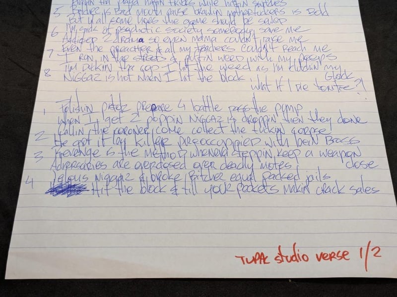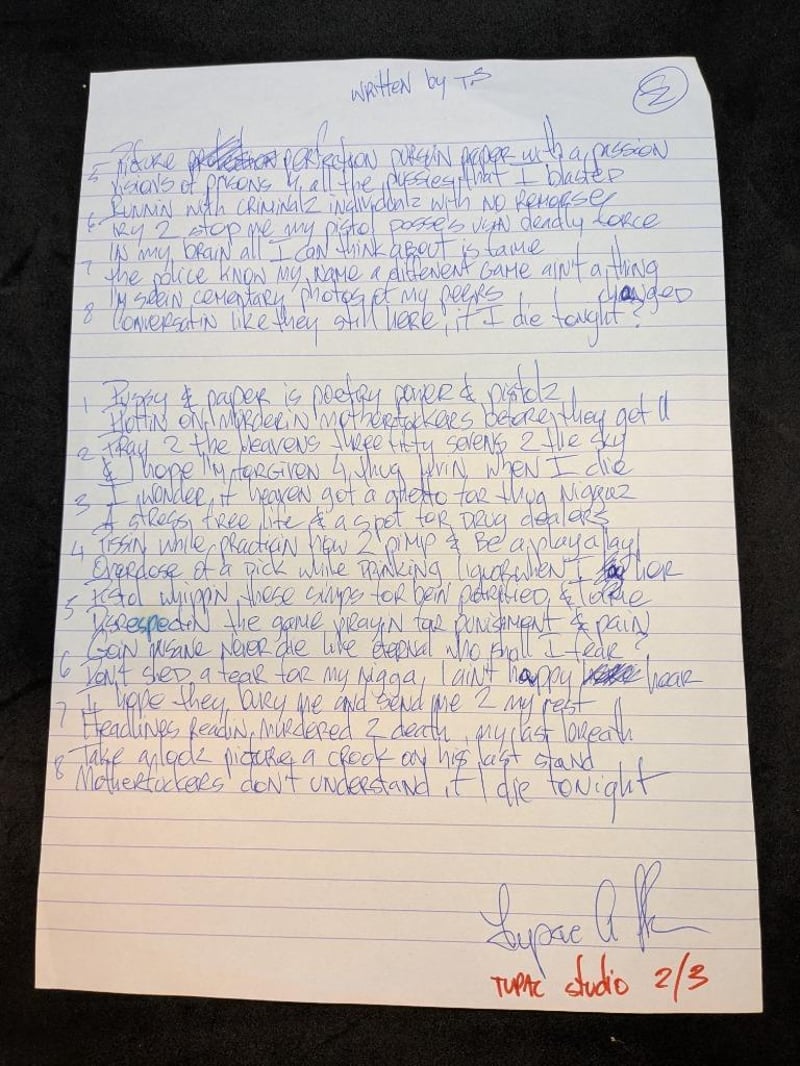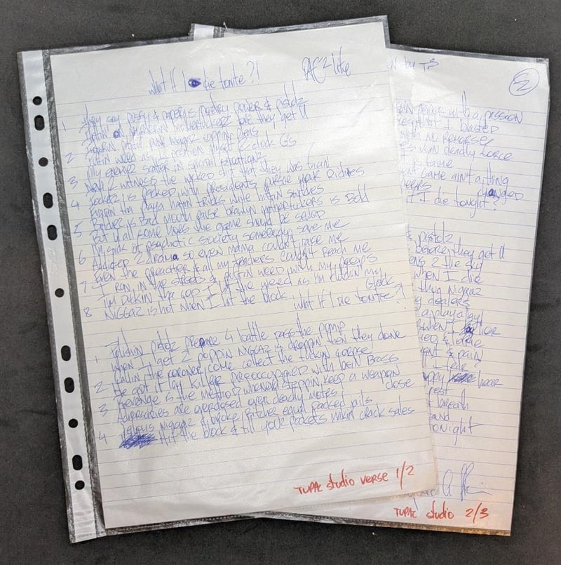 TUPAC SHAKUR HAND WRITTEN AND SIGNED LYRIC SHEET FOR 'WHAT IF I DIE 2NITE?'