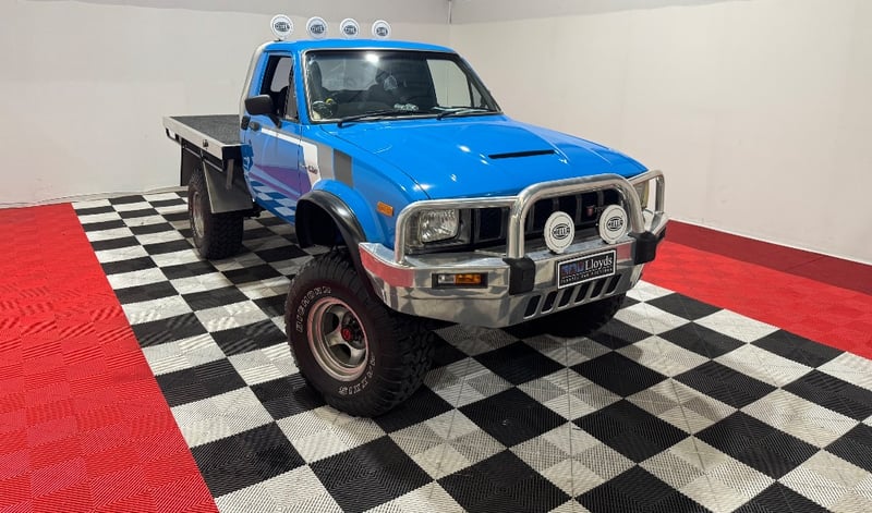 A classic early 4x4 Hilux, well suited to off‑road or rural use, featuring a custom tray and a range of aftermarket additions.