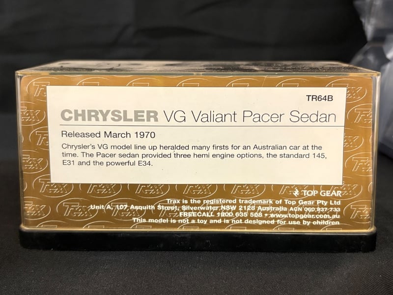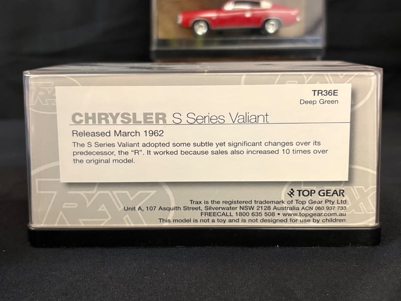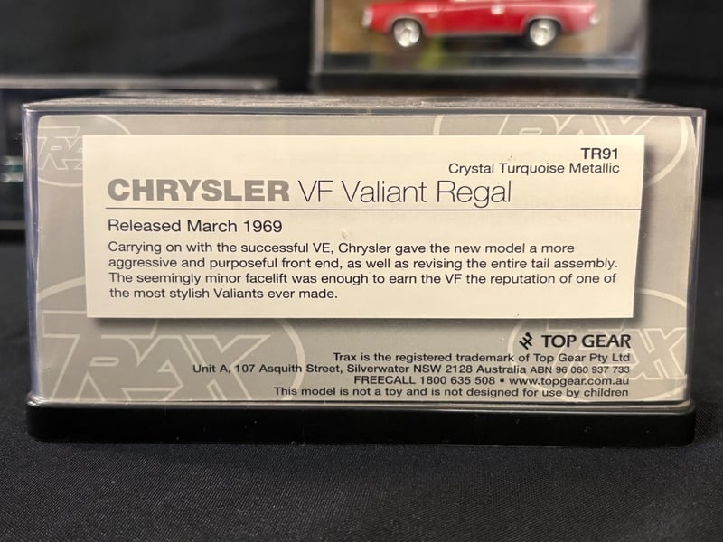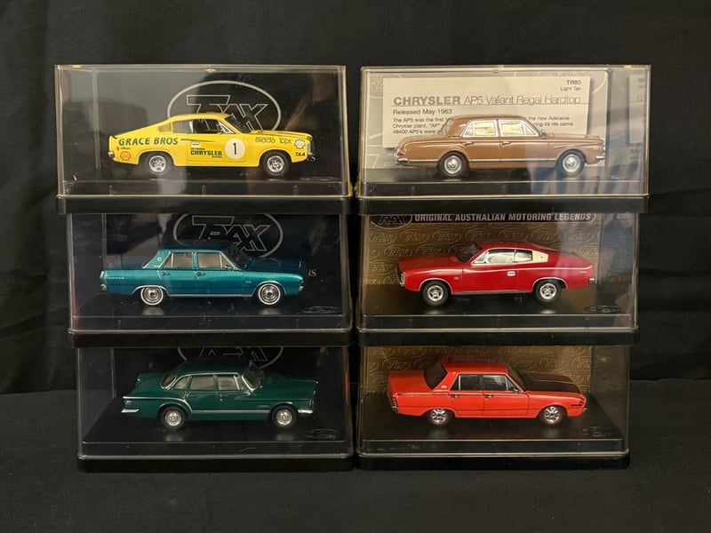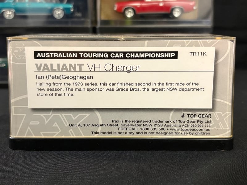 Trax Die Cast Model Cars Chrysler VG Valiant Pacer Sedan Valiant VH ChargerChrysler S Series Valiant Chrysler AP5 Valiant Regal Hardtop Chrysler VF Valiant Regal Valiant VH Charger Australian Touring Car Championship