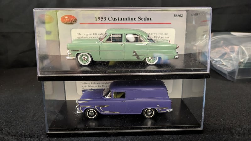 Trax Die Cast Model Cars 1953 Customline Sedan TRR62 1960 FB Panel Van TRR35B Purple
