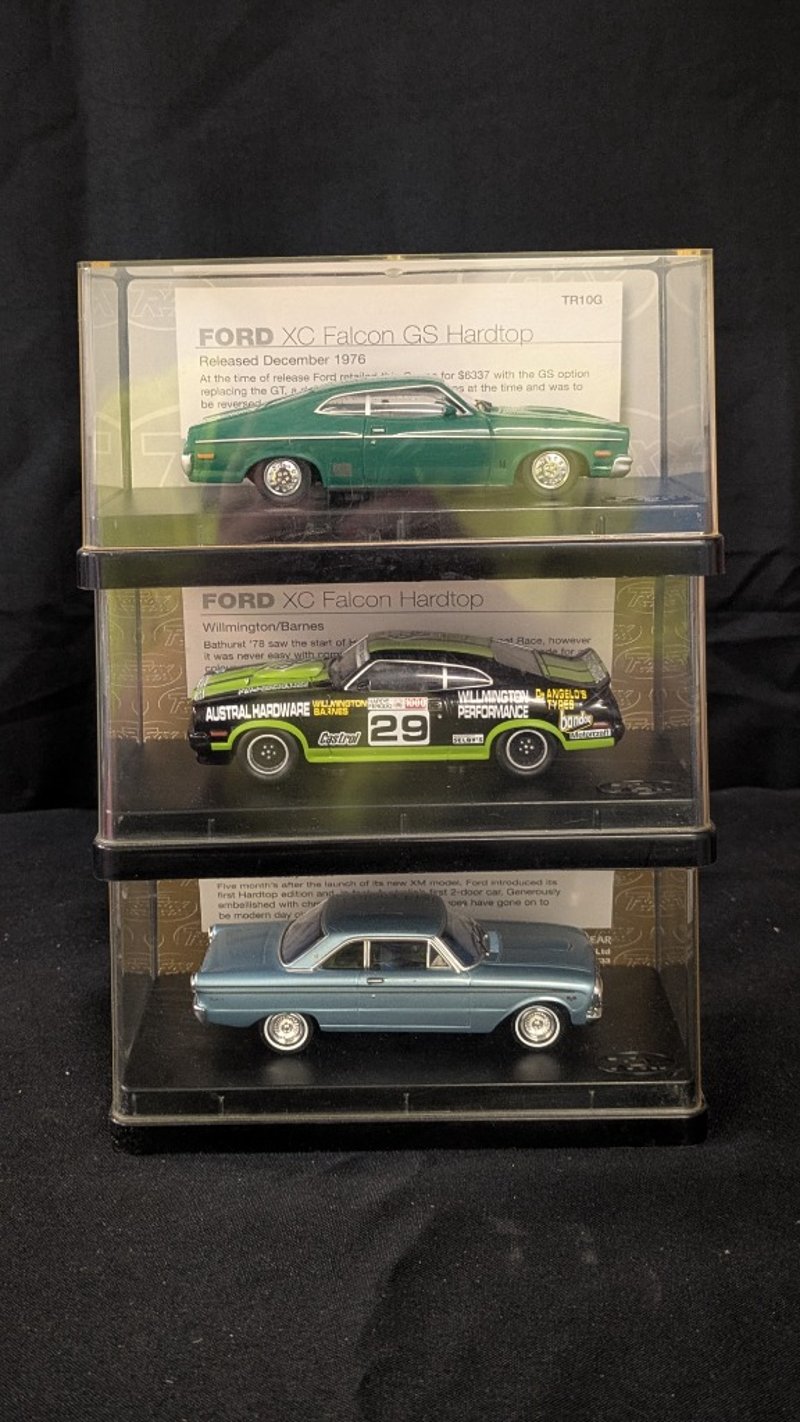 Trax Die Cast Model Cars Ford XM Futura Hardtop TR50BFord XC Falcon Hardtop Bathurst Racing Series TR10EFord XC Falcon GS Hardtop TR10G