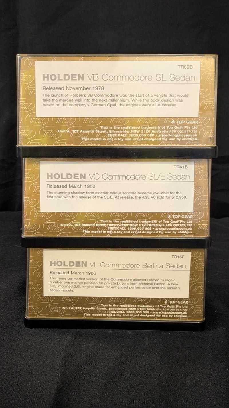 Trax Original Motoring Legends Die Cast Model Cars Holden VB Commodore SL Sedan TR60BHolden VC Commodore SL/E Sedan TR61BHolden VL Commodore Berlina Sedan TR16F