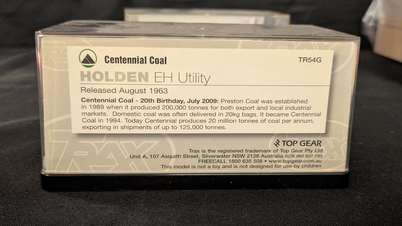 Trax Die Cast Model Cars including Holden EH Utility CENTENNIAL COAL TR54G and Holden EH Utility TR54D RAAF