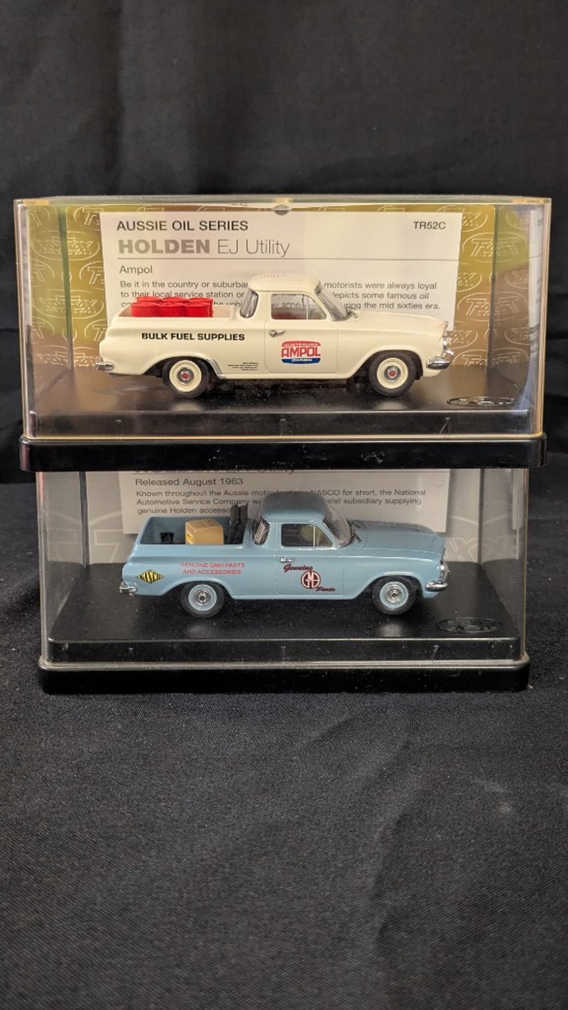Trax Die Cast Model Cars including Holden EJ Utility AUSSIE OIL SERIES TR52C and Holden EH Utility NASCO TR54E