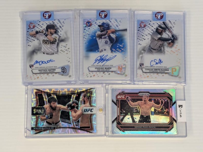 TRADING CARDS, INCLUDES UFC AUTO CARDS, ROOKIE AUTO BASEBALL CARDS, AND MORECondition: Good - Refer To Images232856+38