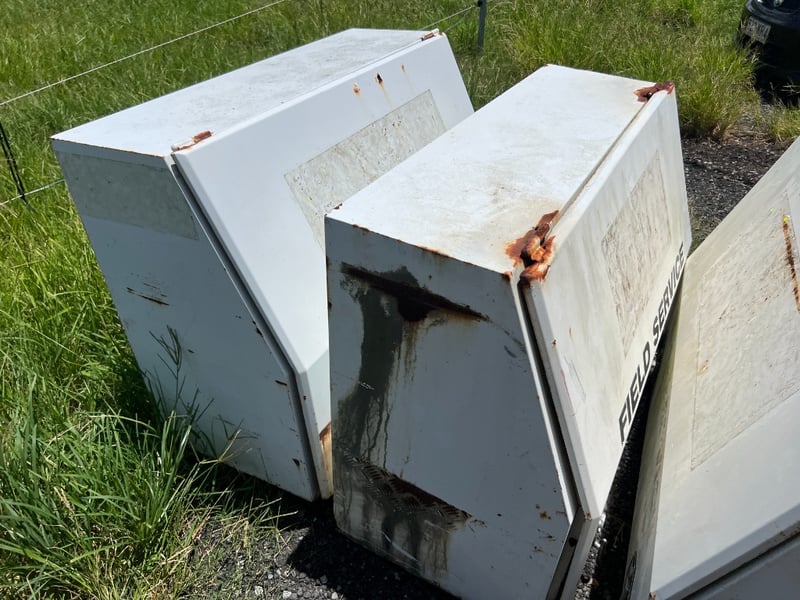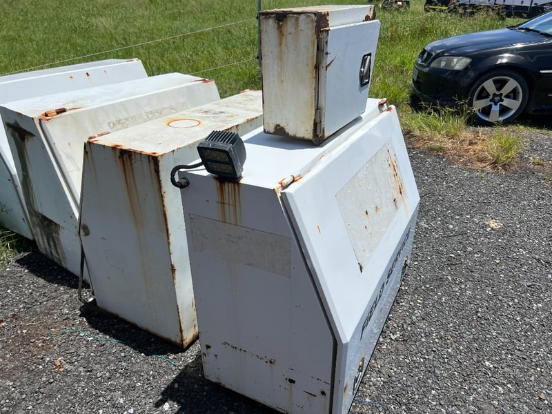 Condition: Used. Units show external surface rust, primarily along seams and hinges, but remain structurally solid.