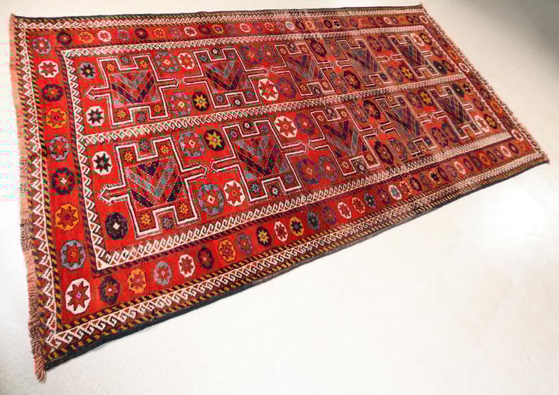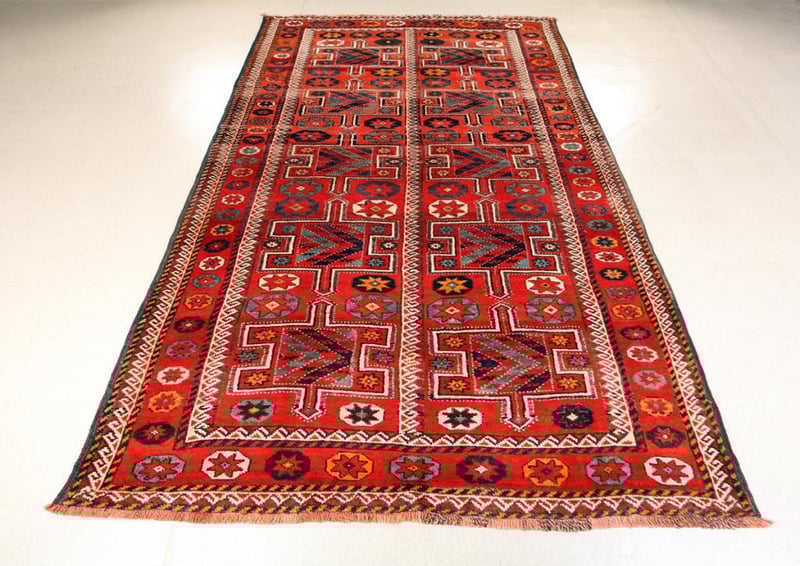 100% Wool Geometric Design In Red Tons Natural Dys. Circa 1980S. Rrp:$ 3890 Size(Cm): 280X153