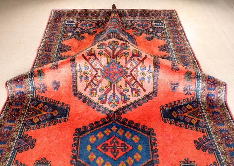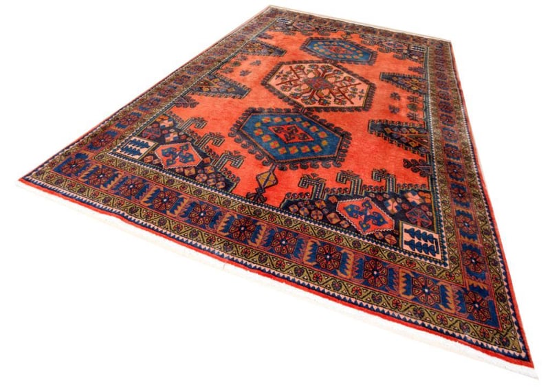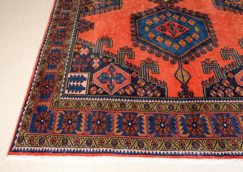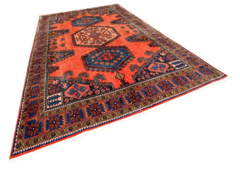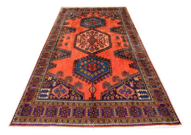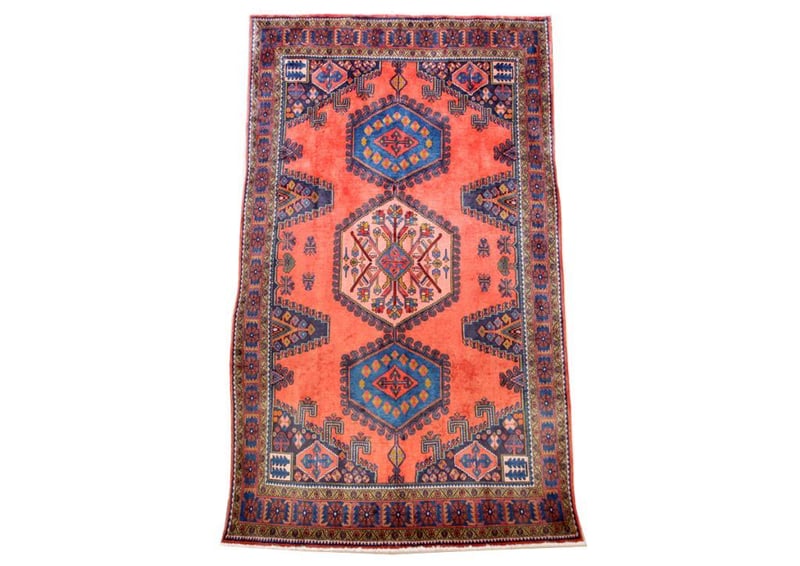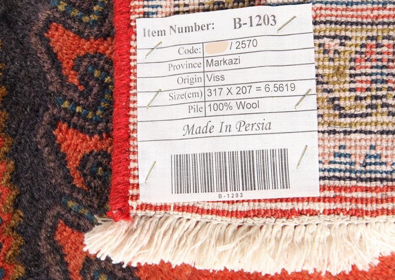 A VERY FINE HAND KNOTTED PERSIAN VISS 100 Wool Geometric Design In Red Tons Natural Dys. Circa 1980S. Rrp:$ 5890 Size(Cm): 317X207Condition: Good - Refer To Images488472+18(Shipping: 100cm L X 25 cm W X 20 cm HX 25 Kg - Folded)
