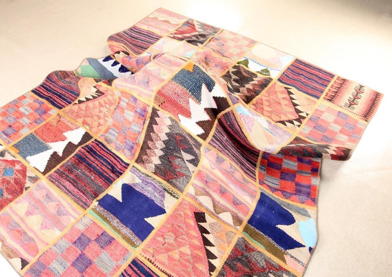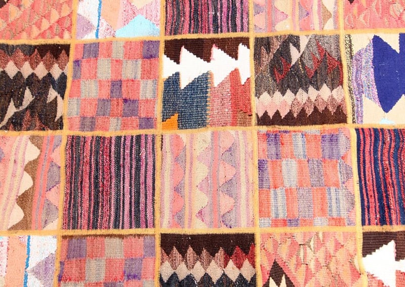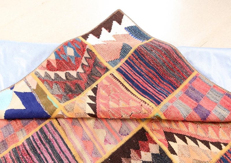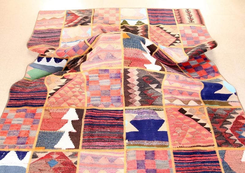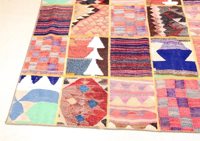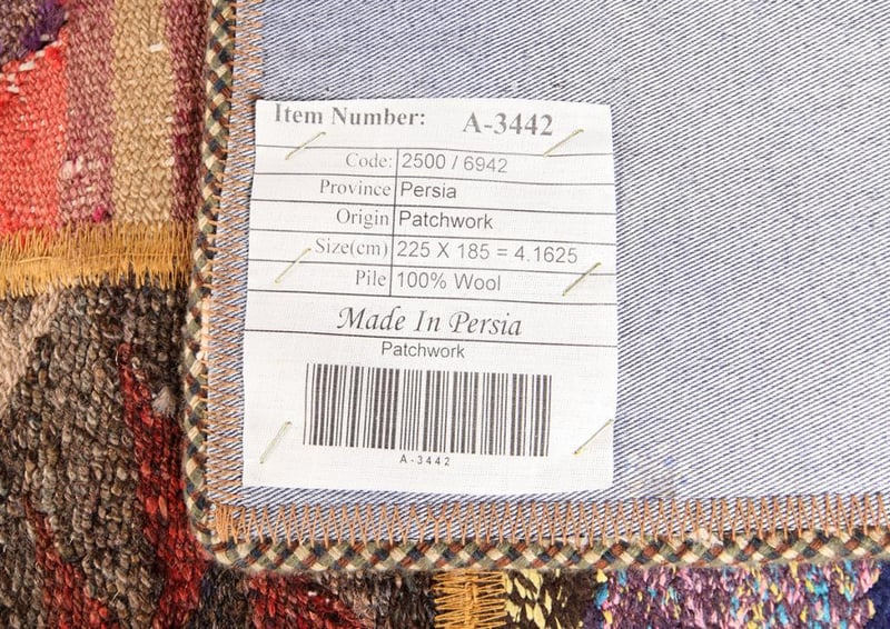 A PERSIAN PATCHWORK KILIM CARPET.100% Lambs Wool Polished Pile, Very Solid And Densely Hand Woven. In A Multi Colors Tone. Origin: Persia. Rrp: $2800 Circa 1980S. Size(Cm): 225X185Condition: Good - Refer To Images488472+29(Shipping: 110cm L X 25 cm W X 30 cm HX 25 Kg - Folded)