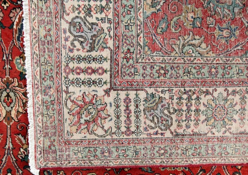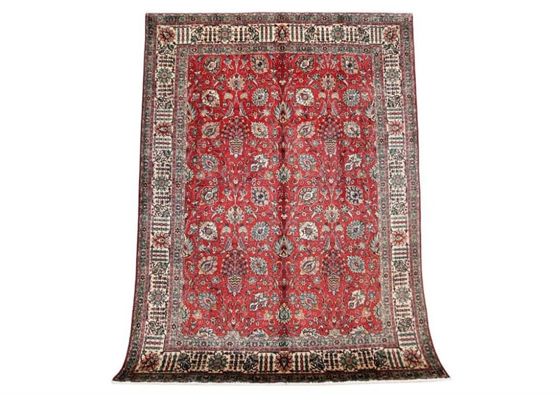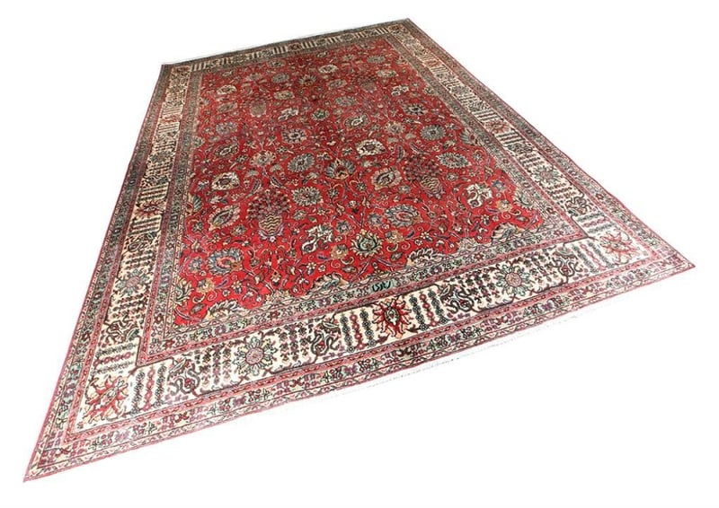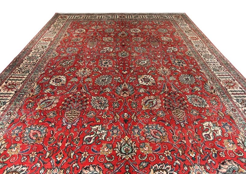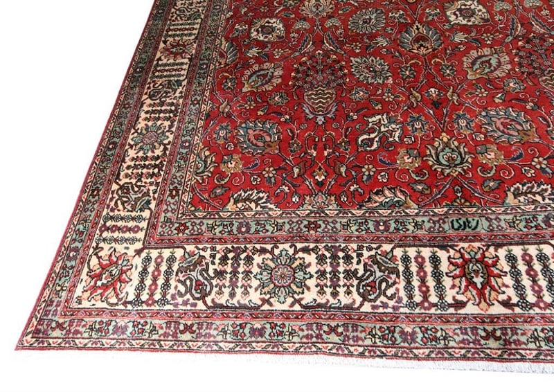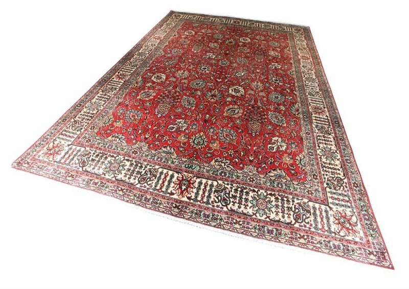 A FINELY HAND KNOTTED PERSIAN TABRIZ. An All Over Flower Design In Red Tone With Cream Border.100% Wool Pile. Rrp:$6780. Circa 1980S. Size(Cm): 290X300Condition: Good - Refer To Images488472+30(Shipping: 110cm L X 30 cm W X 30 cm HX 30Kg - Folded)