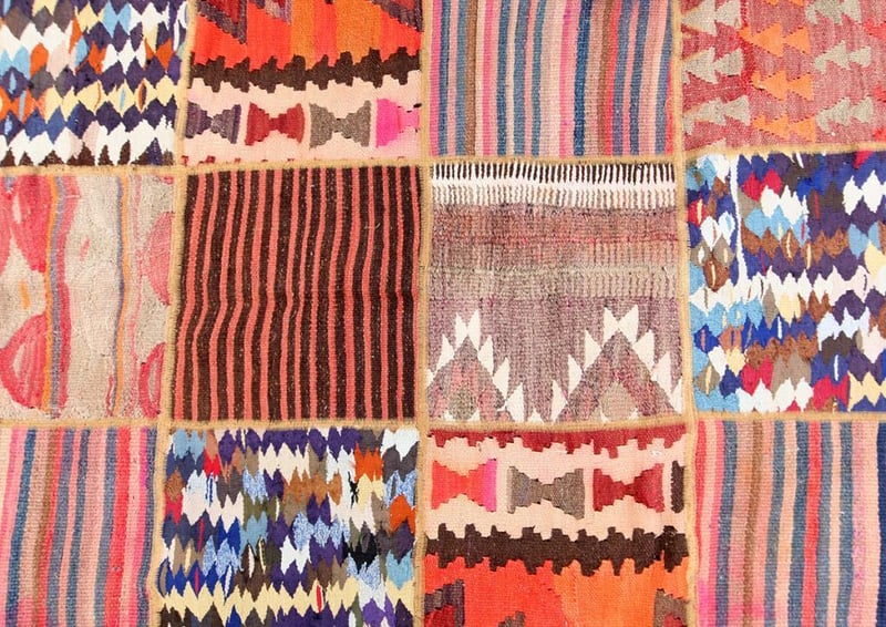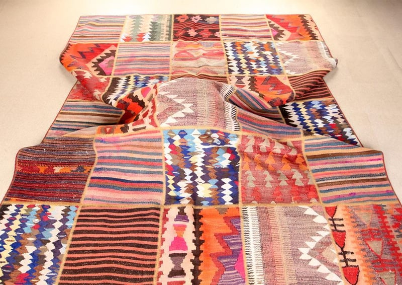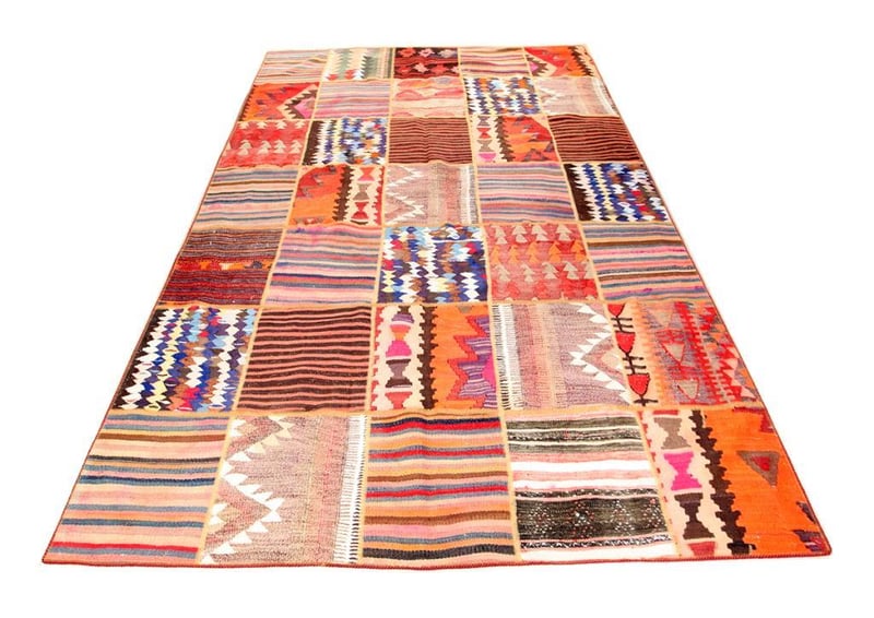 A PERSIAN PATCHWORK KILIM CARPET.100% Lambs Wool Polished Pile, Very Solid And Densely Hand Woven. In A Multi Colors Tone. Origin: Persia. Rrp: $4800 Circa 1980S. Size(Cm): 295X210Condition: Good - Refer To Images488472+39(Shipping: 110cm L X 25 cm W X 30 cm HX 25 Kg - Folded)