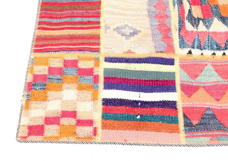 A PERSIAN PATCHWORK KILIM RUNNER.100% Lambs Wool Polished Pile, Very Solid And Densely Hand Woven. In A Multi Colors Tone. Origin: Persia. Rrp: $2200 Circa 1980S 310X 80Condition: Good - Refer To Images488472+40(Shipping: 80cm L X 25 cm W X 30 cm HX 15 Kg - Folded)