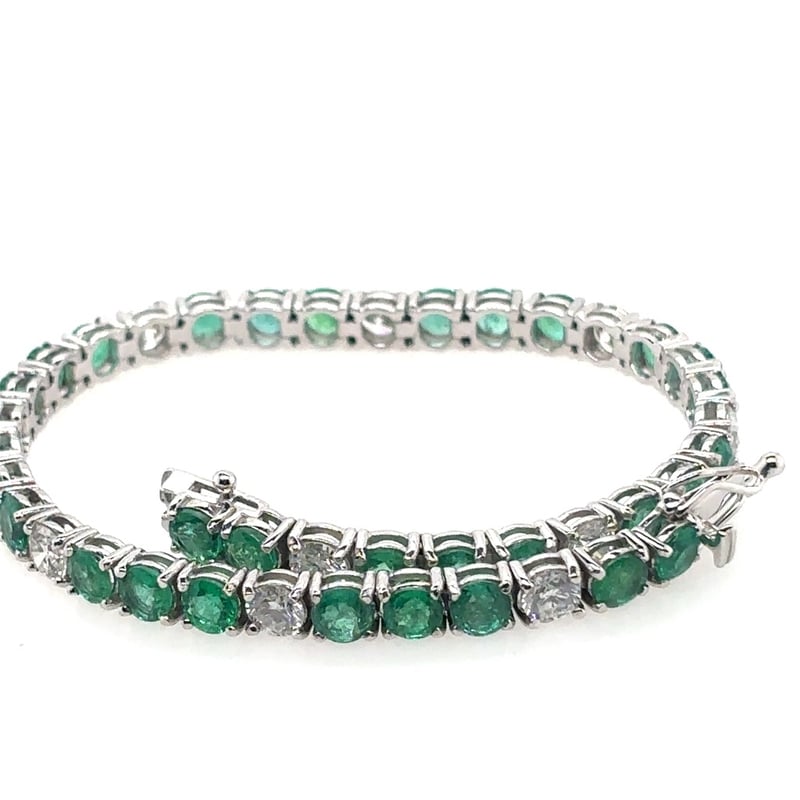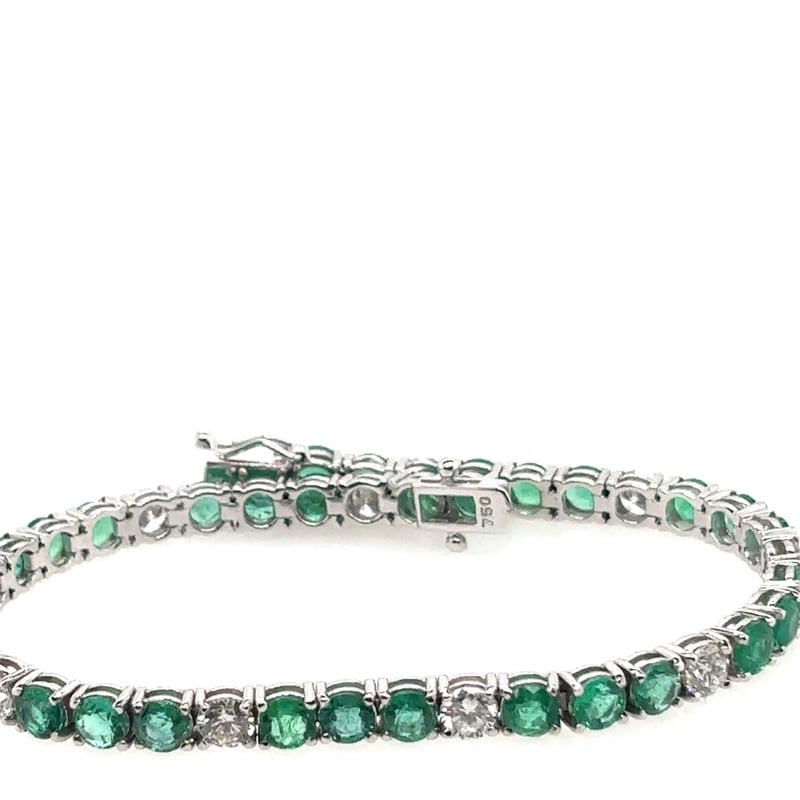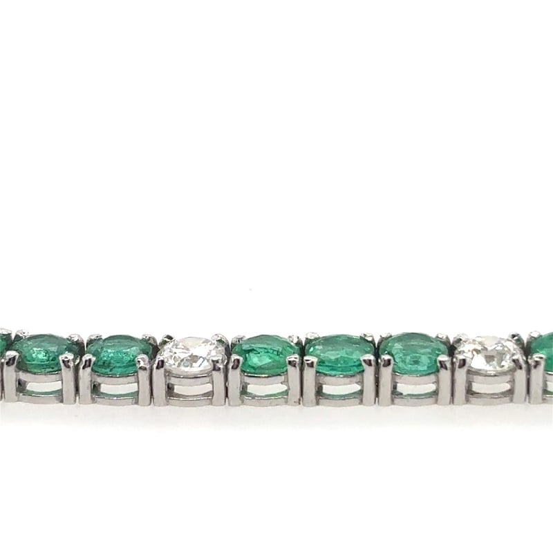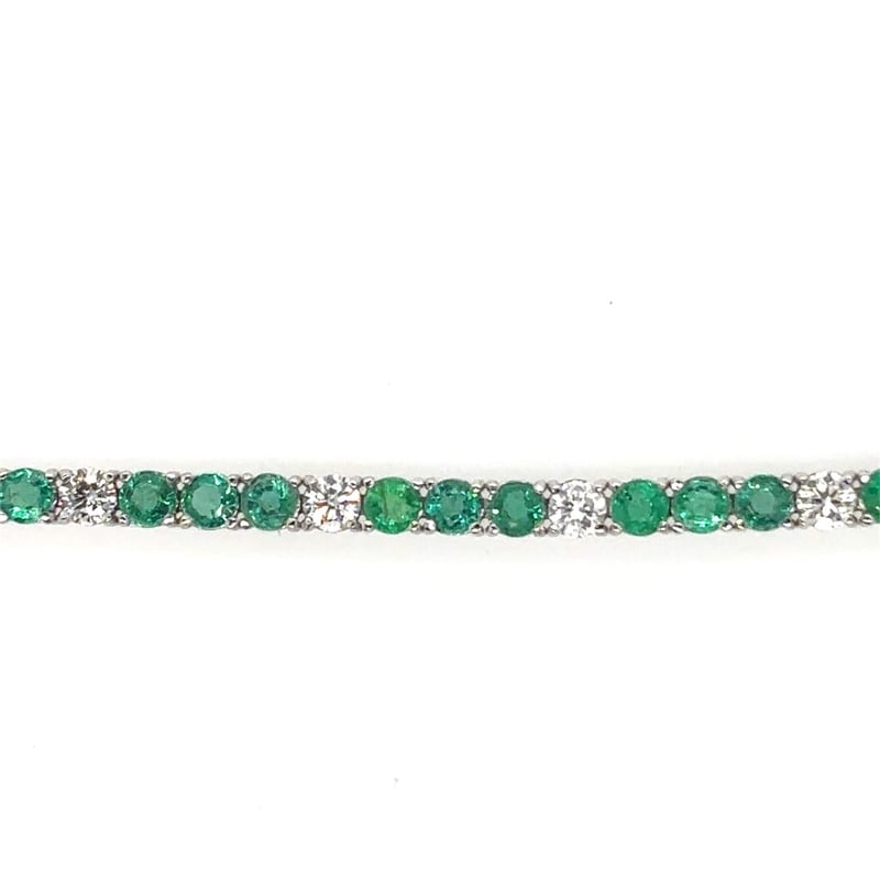 18CT WHITE GOLD EMERALD AND DIAMOND TENNIS BRACELET