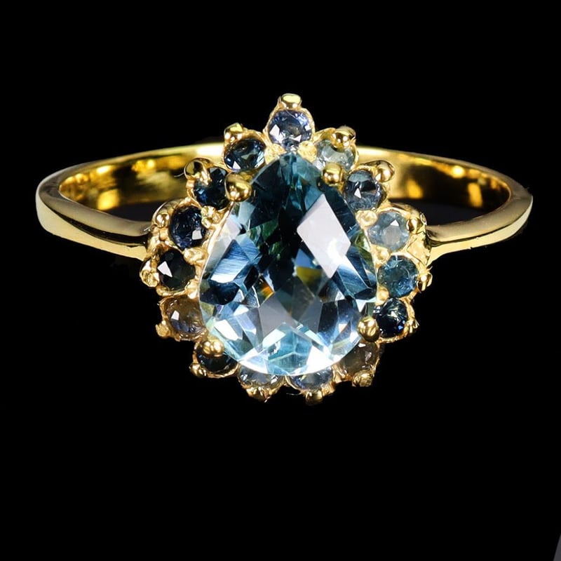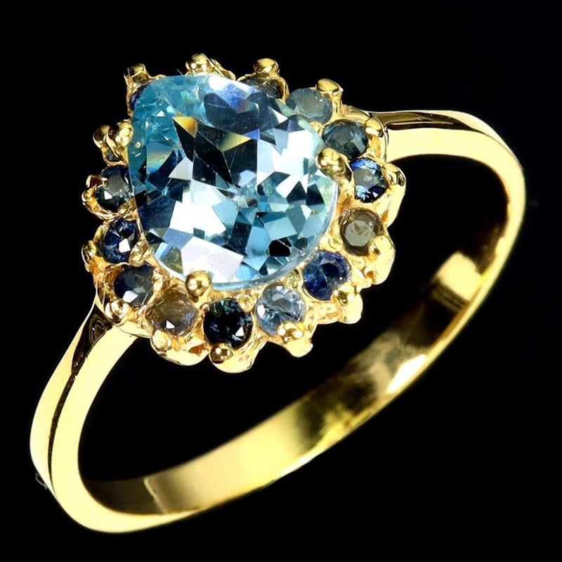 Natural Sapphire & Topaz Ring. Made In Solid Sterling Silver An Plated In14K Yellow Gold. Features Natural Sky Blue Topaz And Natural Midnight Blue Sapphires. Ring Size 8