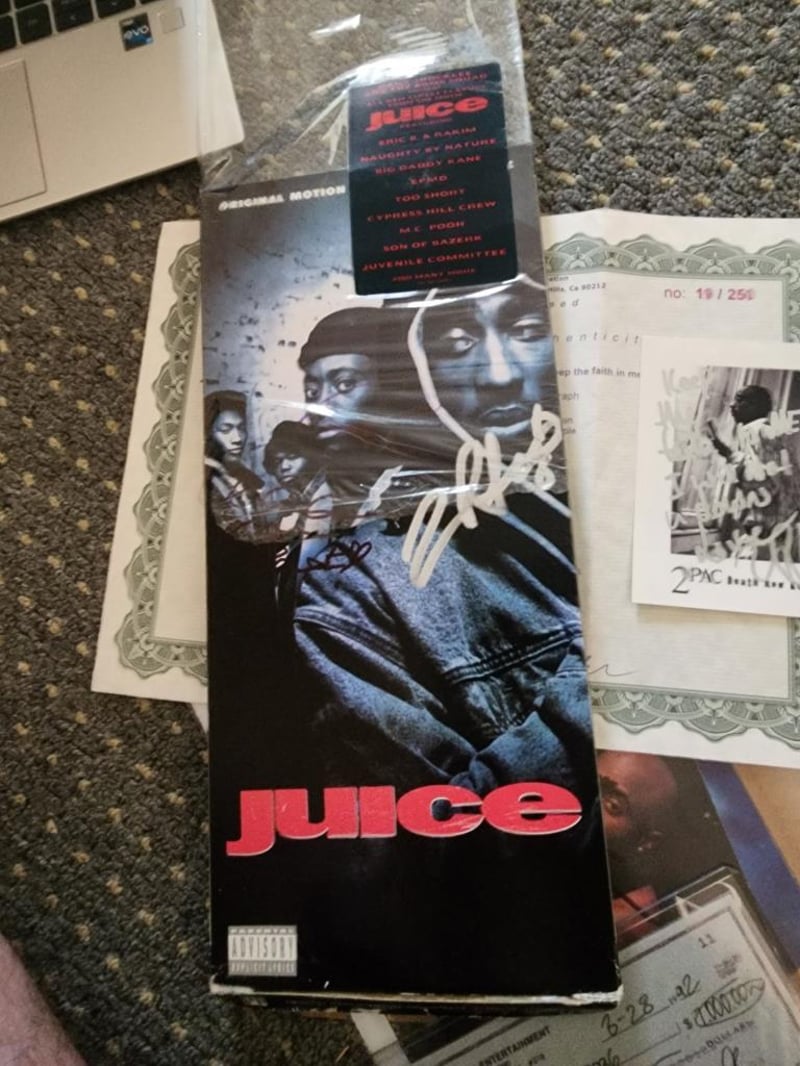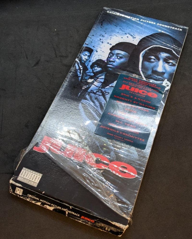 'JUICE' MOVIE SOUNDTRACK LONGBOX SIGNED BY TUPAC SHAKUR AND CAST