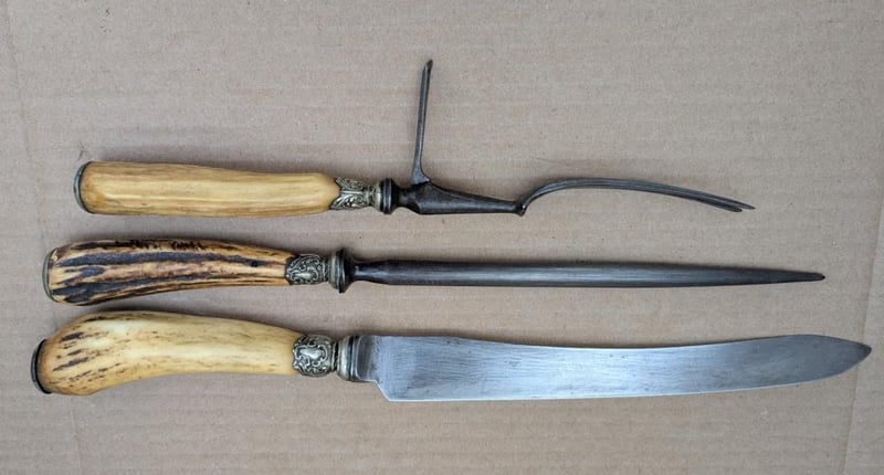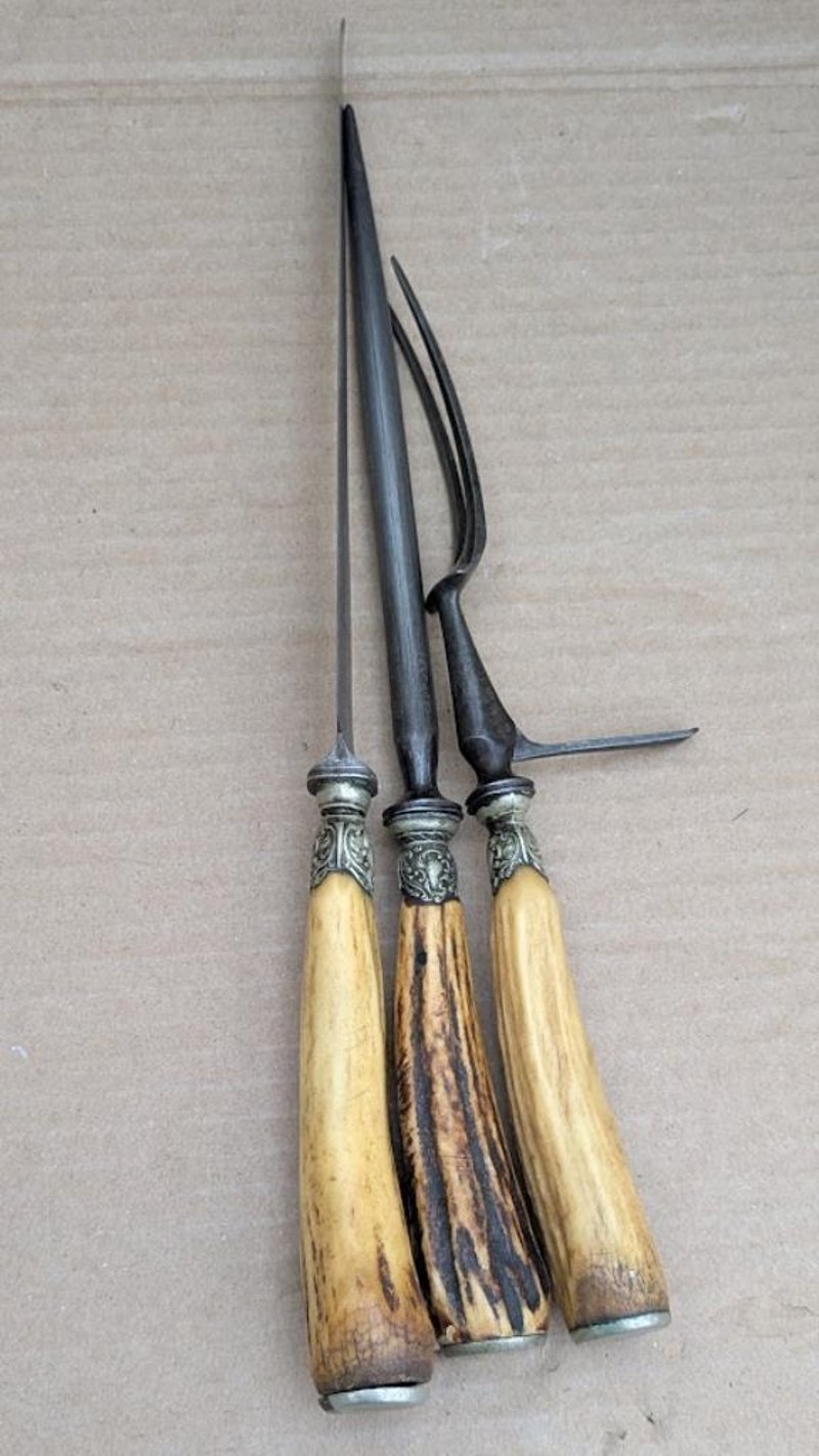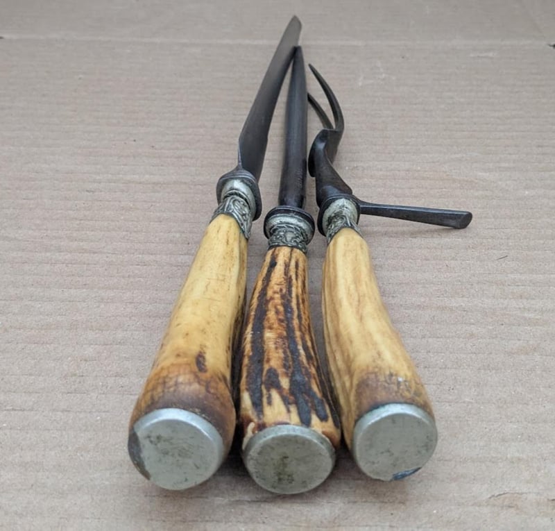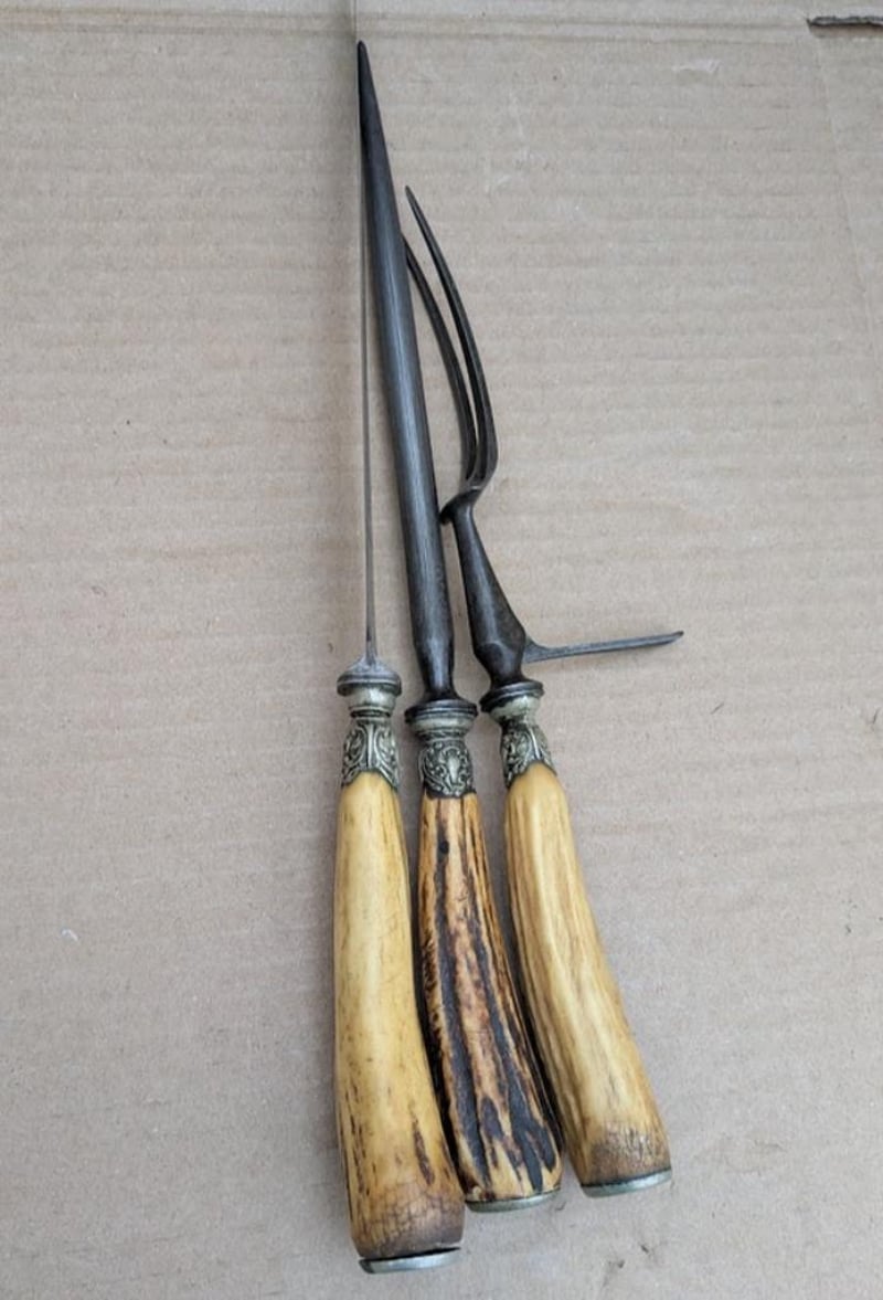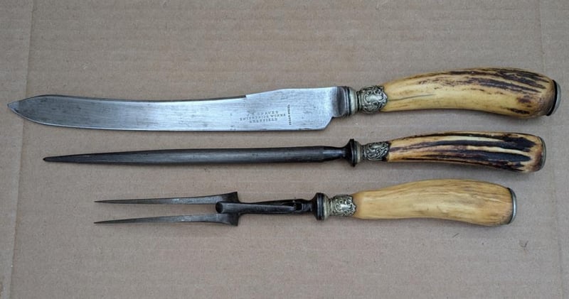 VINTAGE CARVING SET WITH STAG HORN ANTLER HANDLE MADE IN SHEFFIELD ENGLAND