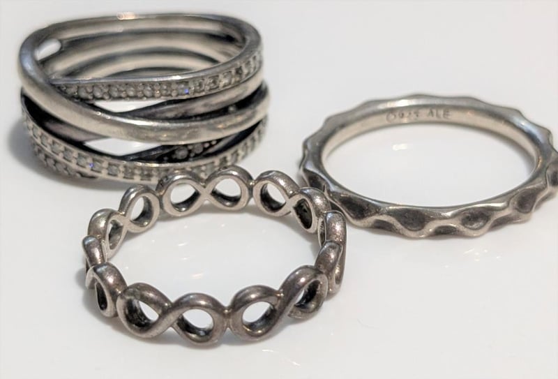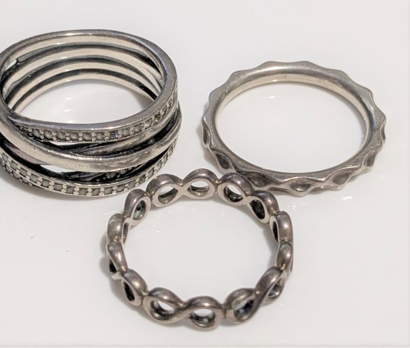 STERLING SILVER PANDORA RINGS, QTY OF 3
