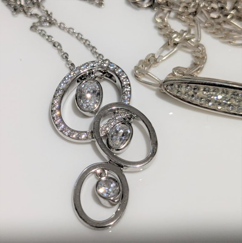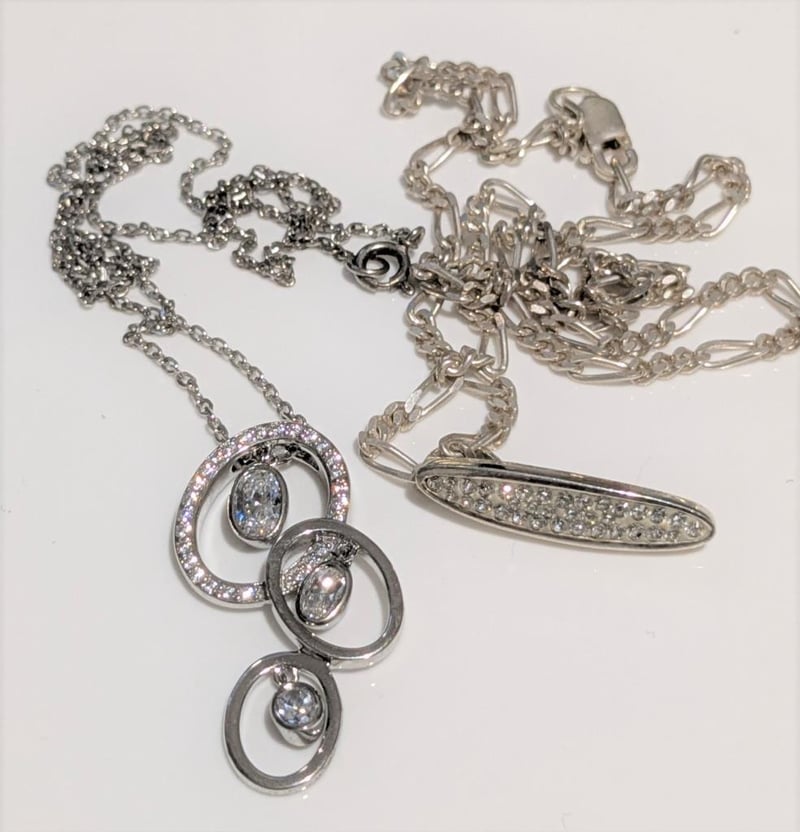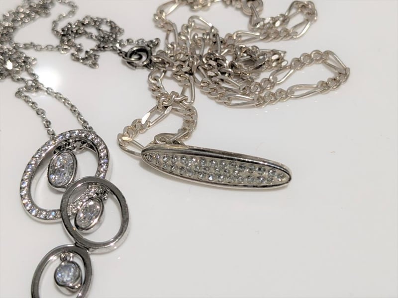 STERLING SILVER PENDANTS WITH WHITE STONES & CHAINS