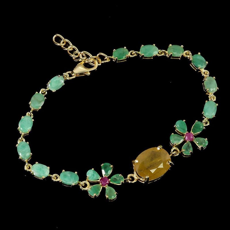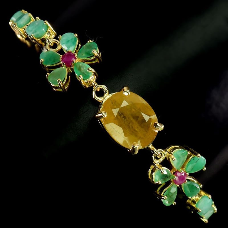 Natural Sapphire Emerald & Ruby Tennis Bracelet. Made In Solid Starling Silver And Plated In14K Yellow Gold. Features Natural Yellow Sapphire, Natural Green Emeralds And Natural Red Rubies. Bracelet Measures 7.5 Inches