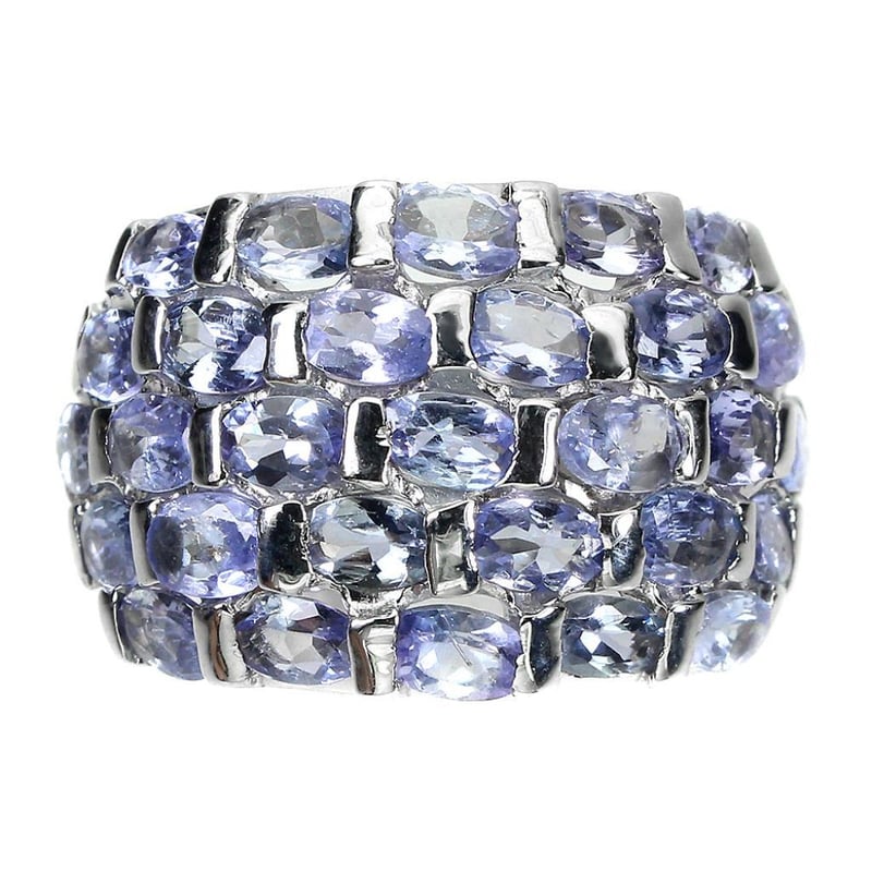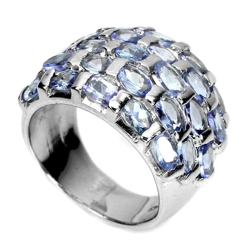 Natural Tanzanite Statement Ring.. Made In Solid Sterling Silver And Plated In14K White Gold. Features Natural Violtish Blue Tanzanite'S Ring Size 8