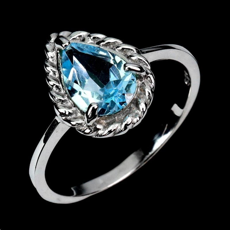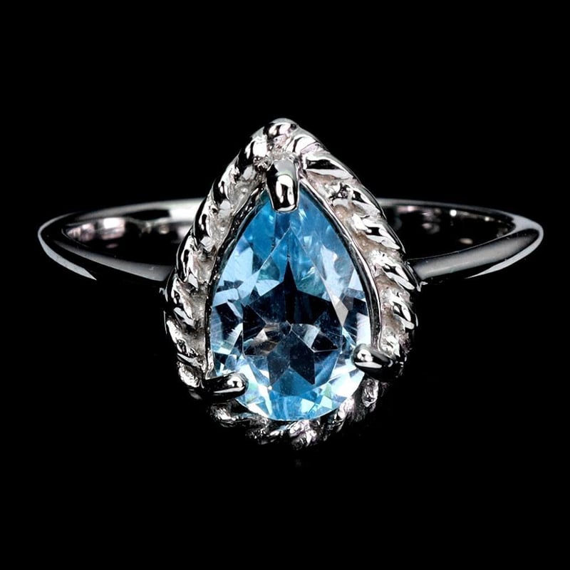 Natural Sky Blue Topaz Ring. Made In Solid Sterling Silver And Plated In14K White Gold. Features Natural Pear Facet Blue Topaz. Ring Size 8.5