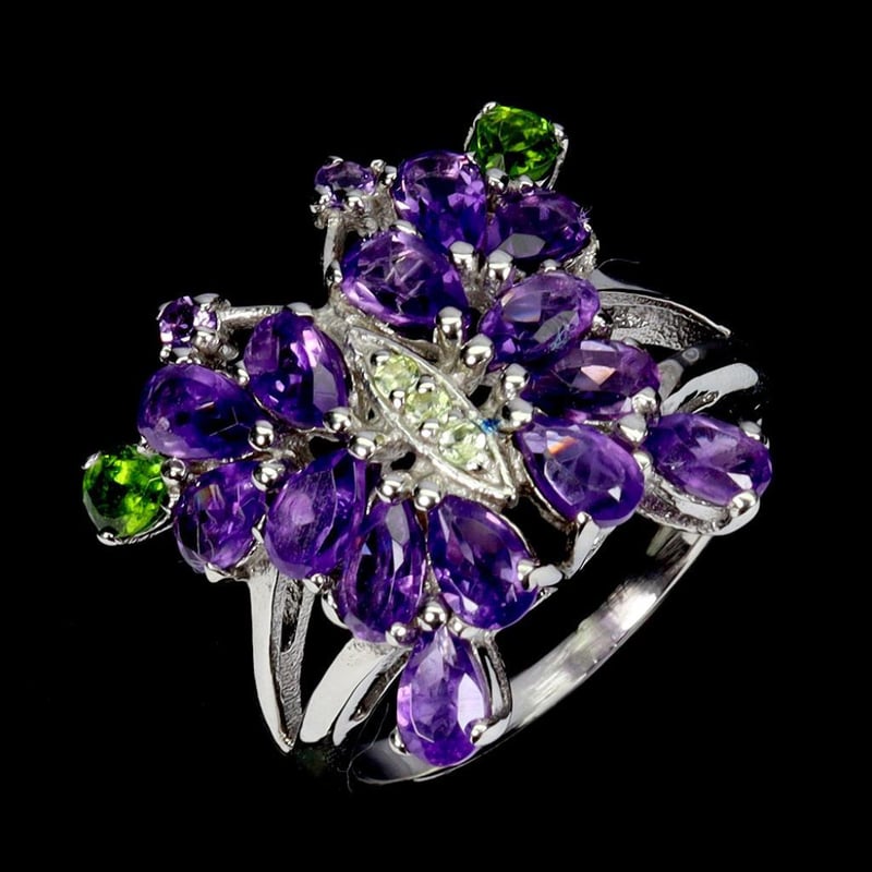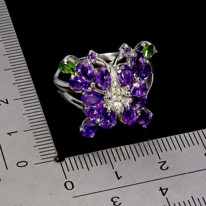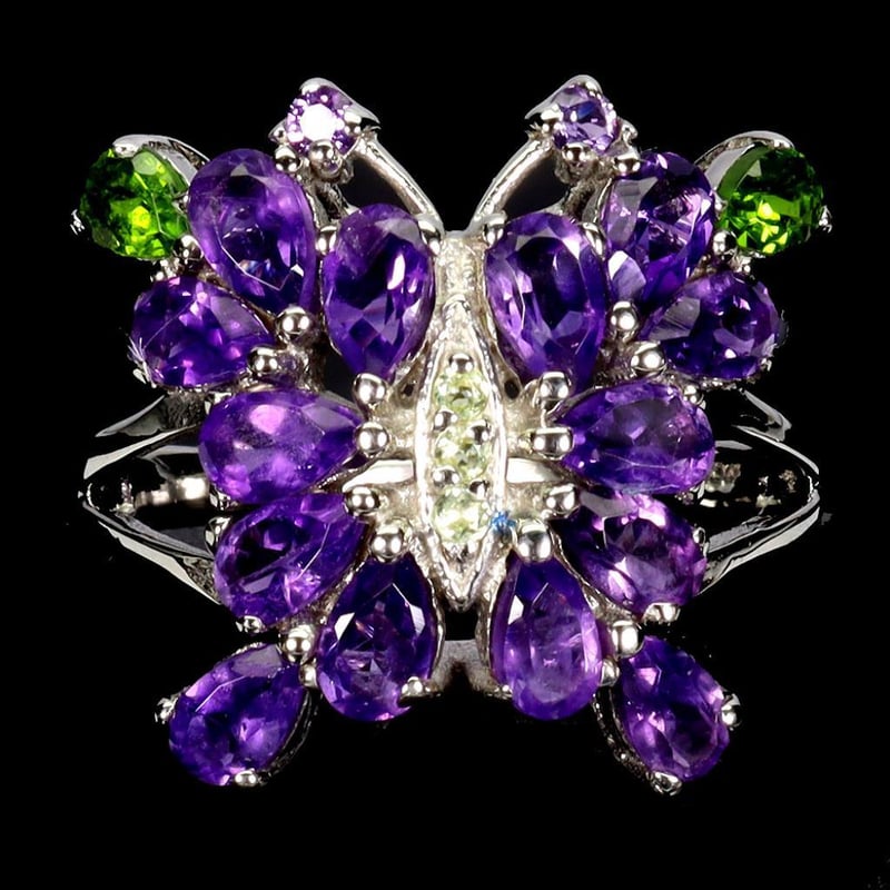 Natural Amethyst & Peridot Butterfly Ring. Made In Solid Sterling Silver And Plated In14K White Gold. Features Natural Purple Amethyst And Natural Green Peridot. Ring Size 8.5