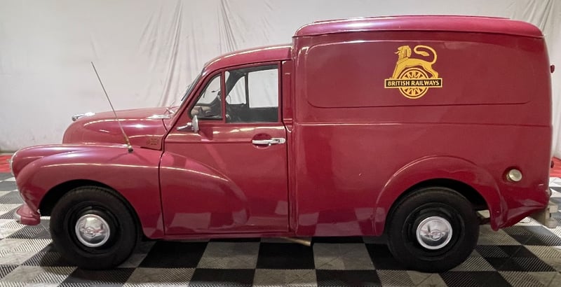 A classic British light commercial vehicle, the Morris Minor Panel Van is well known for its simple engineering and distinctive vintage styling. This 1959 example features British Rail gold insignia on the side and is reported by the vendor to start and drive.