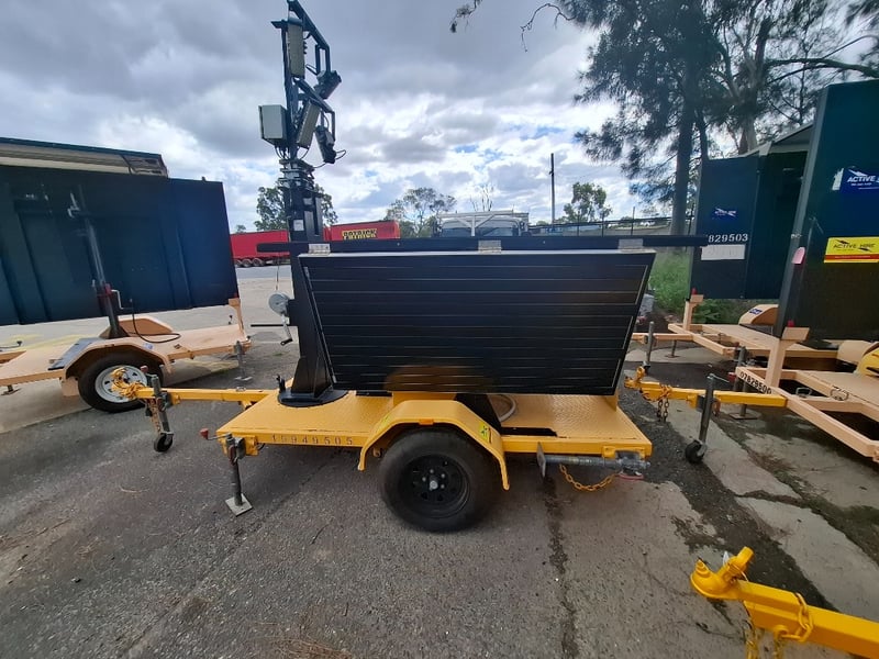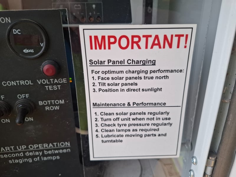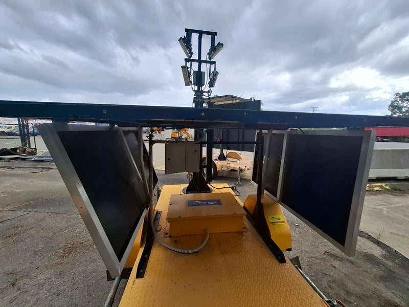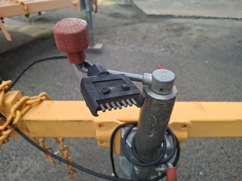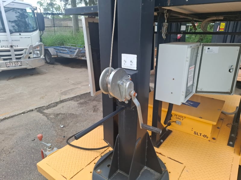 Description: Small 7 pin flat, Jockey Wheel, stabilising legs, telescopic light tower, 4 light sections, fuse box, light tower height from ground up 7.1mts approximately, all lights appear to be in working order, trailer length 3mts, 1.3mts wide approximately