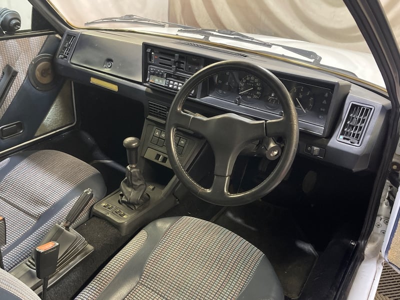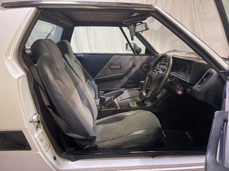 1989 Bertone X1/9 Series 2 two‑door coupe finished in White. Rear‑wheel drive configuration powered by a 2.0‑litre petrol engine paired with a 5‑speed manual transmission. Odometer indicating 86,919 kilometres. Seating for two occupants.