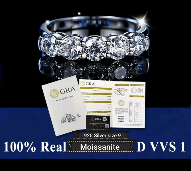 GRA CERTIFIED MOISSANITE ETERNITY RING SIZE 9 TOTAL 1.5 CTS 925 SILVER