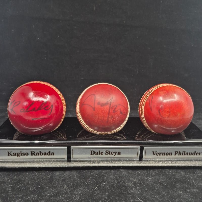 TRIO OF CRICKET BALLS SIGNED BY KAGLSO RABADA, DALE STEYN & VERNON PHILANDER