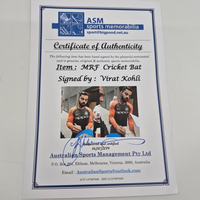 CRICKET BAT SIGNED BY VIRAT KOHLI MRF
