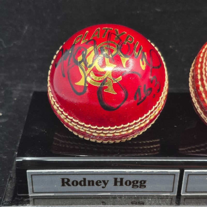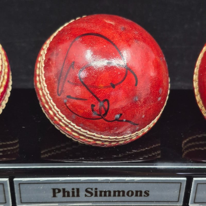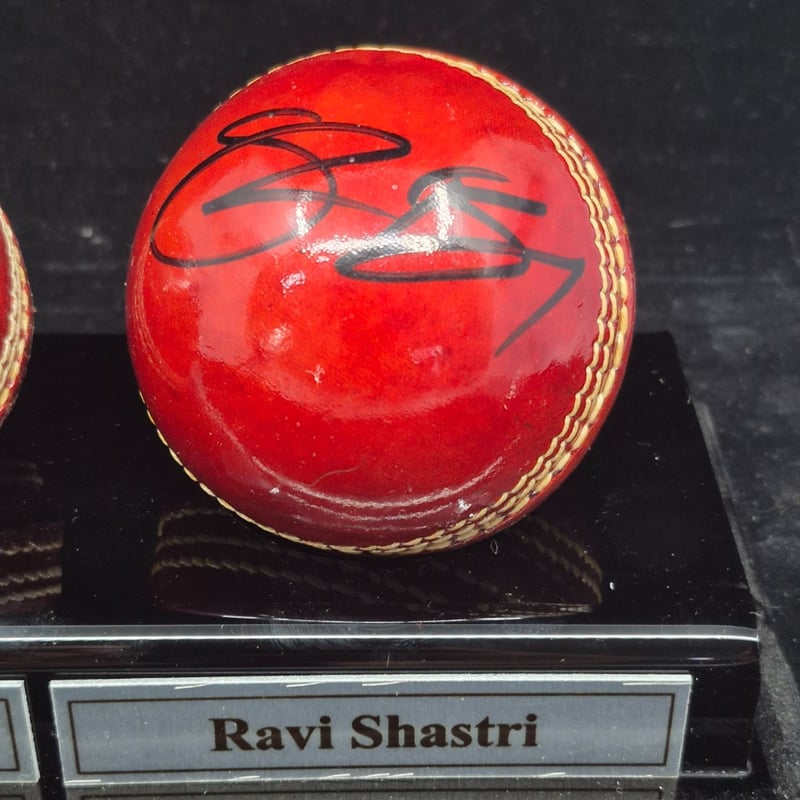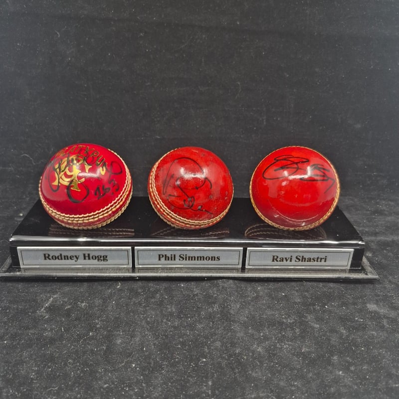 TRIO OF CRICKET BALLS SIGNED BY RODNEY HOGG, PHILL SIMMONS & RAVI SHASTRI