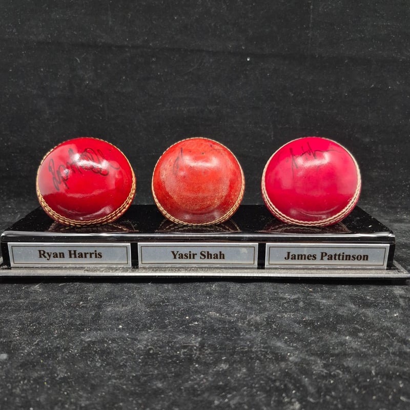 TRIO OF CRICKET BALLS SIGNED BY RYAN HARRIS, YASIR SHAH & JAMES PATTINSON Condition: Good - Refer To Images 587894+25