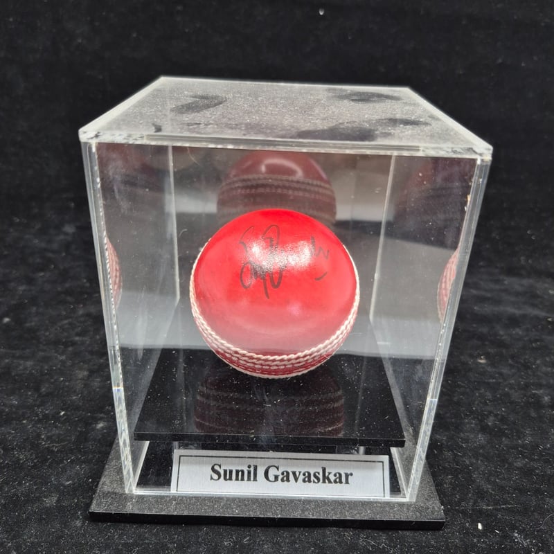 CRICKET BALL SUNIL GAVASKAR SIGNED RED CRICKET BALL + COA
