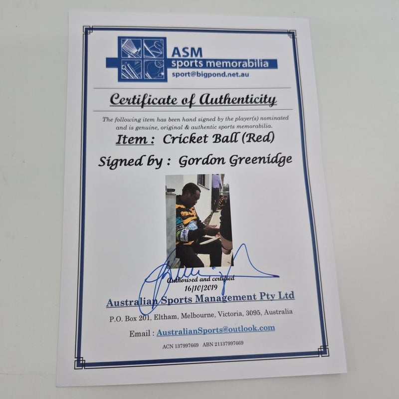 CRICKET BALL SIGNED GORDON GREENIGE SIGNED BALL + COA