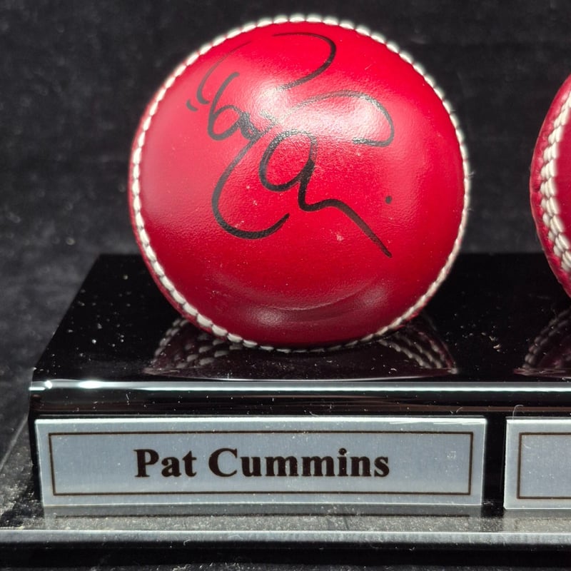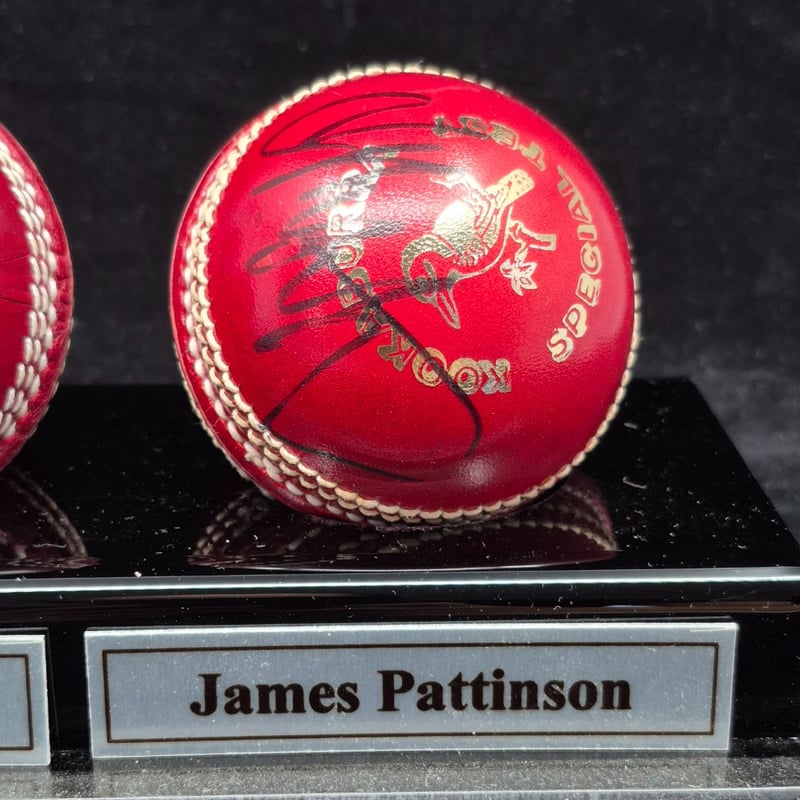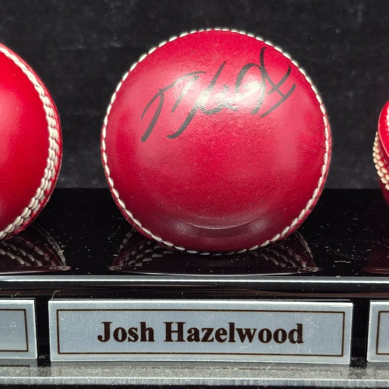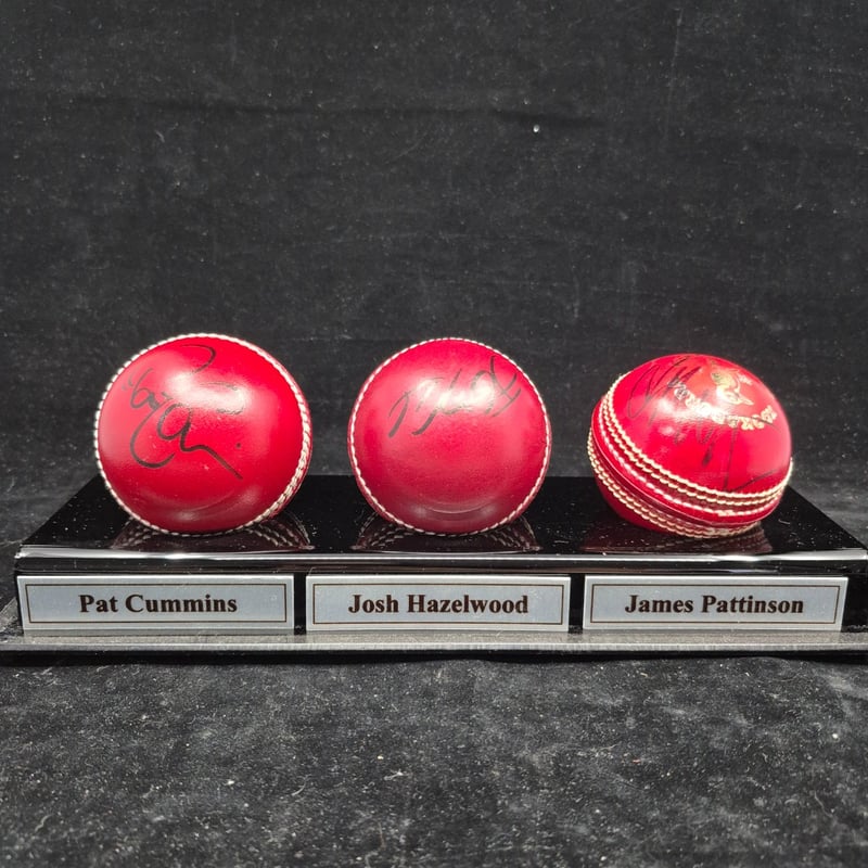TRIO OF CRICKET BALLS SIGNED BY PAT CUMMINS, JOSH HAZELWOOD & JAMES PATTINSON