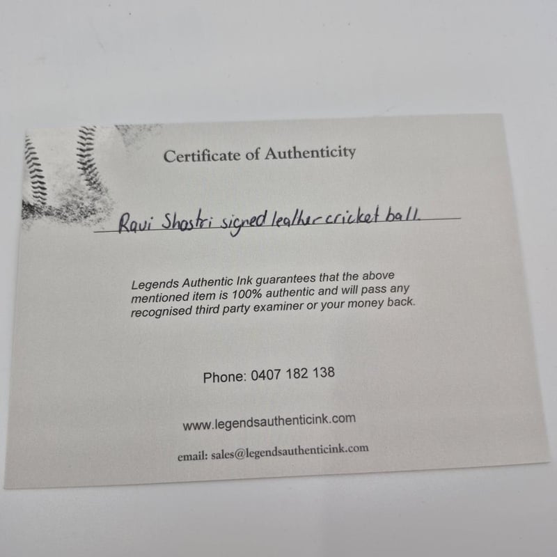 CRICKET BALL RAVI SHASTRI SIGNED RED BALL + COA