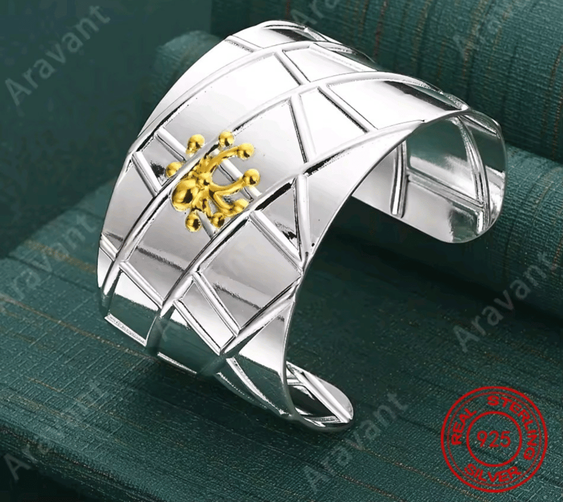 925 SILVER EMBOSSED WIDE CUFF BANGLE Condition: Good - Refer Images 0163059+7