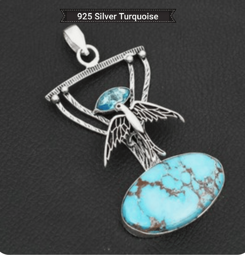 925 SILVER PENDANT WITH TURQUOISE AND BLE TOPAZ STONES