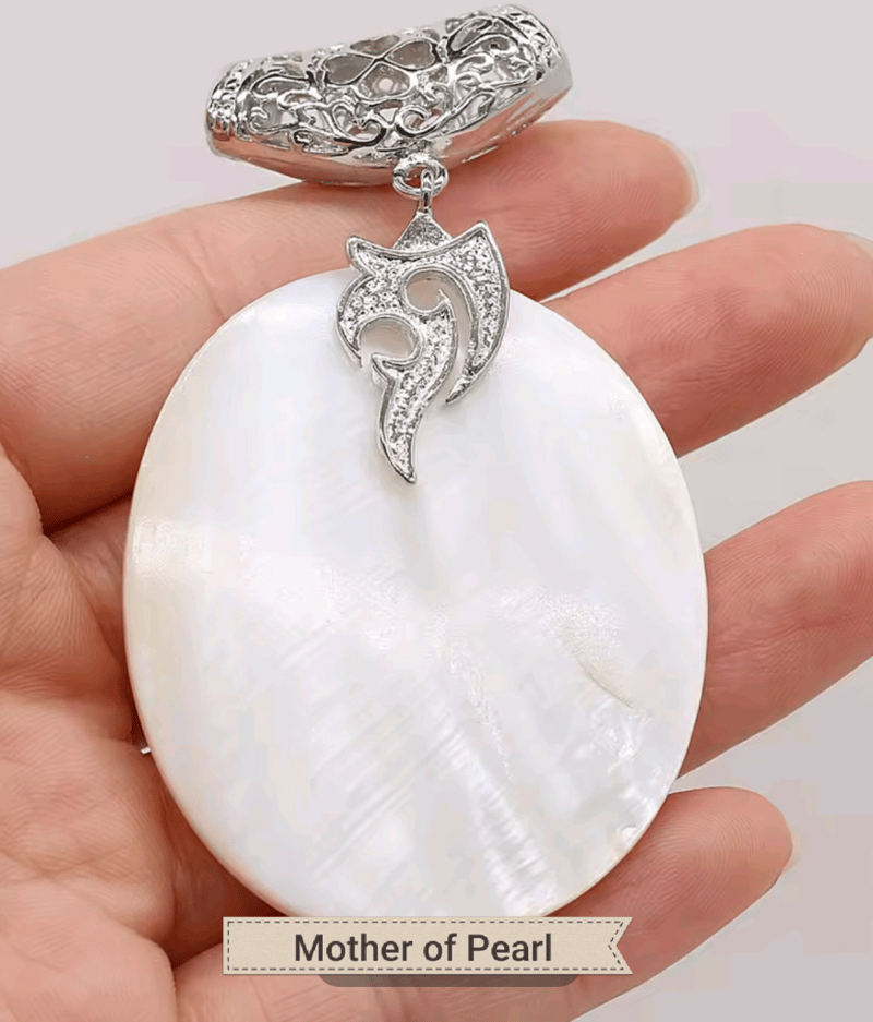 LARGE WHITE MOTHER OF PEARL PENDANT WITH SILVER