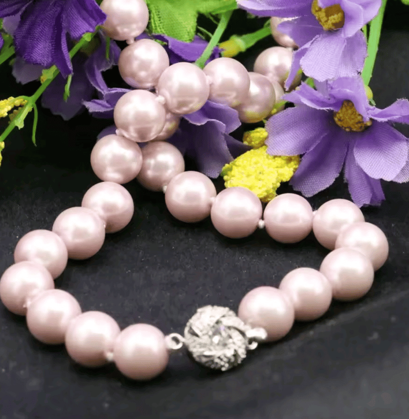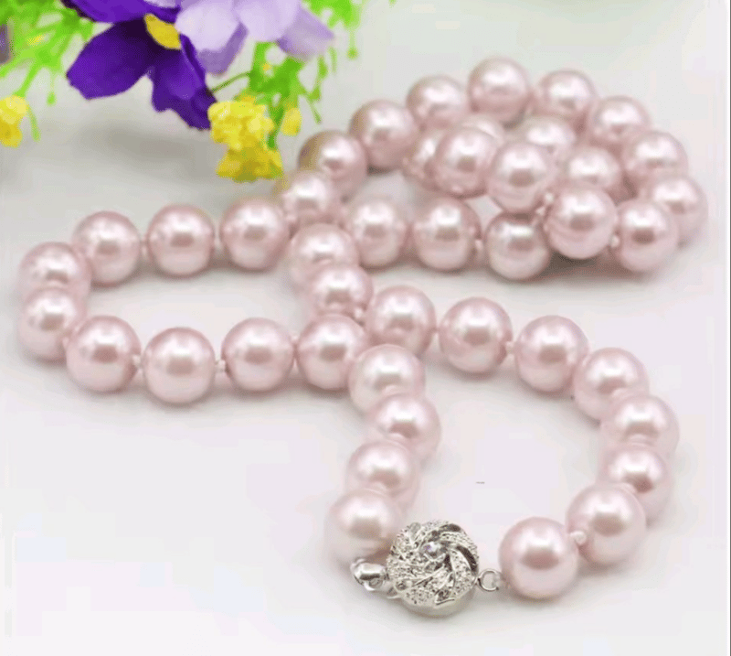 LIGHT PINK SEA SHELL 10MM PEARL NECKLACE