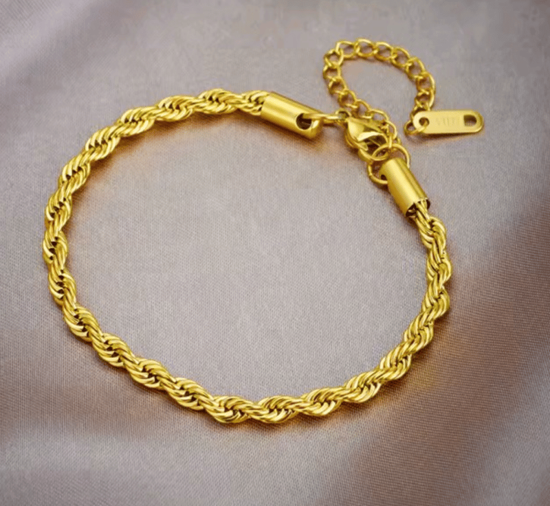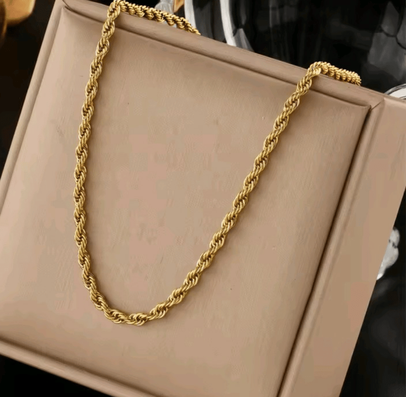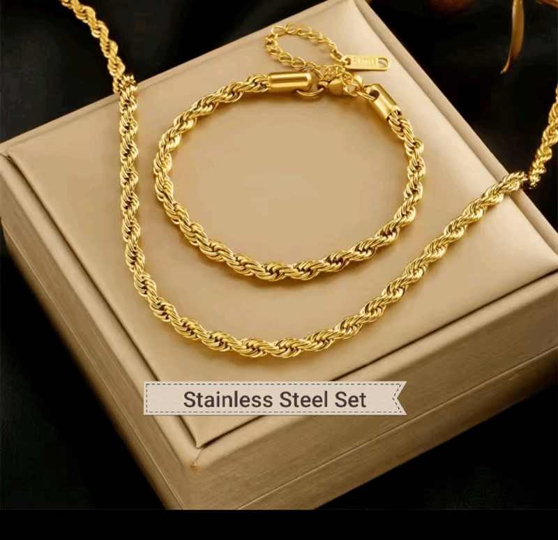 GOLD PLATED STAINLESS STEEL UNISEX ROPE CHAIN NECKLACE AND BRACELET