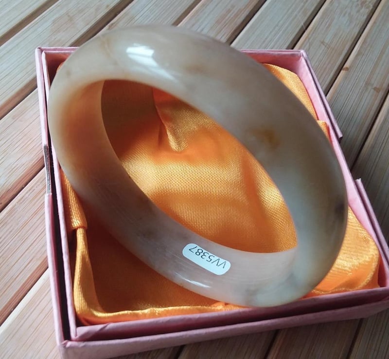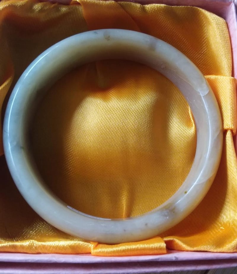 CHINESE LIGHT BEIGE BROWN JADE BANGLE IN BOX Condition: Good - Refer Images 0163059+29