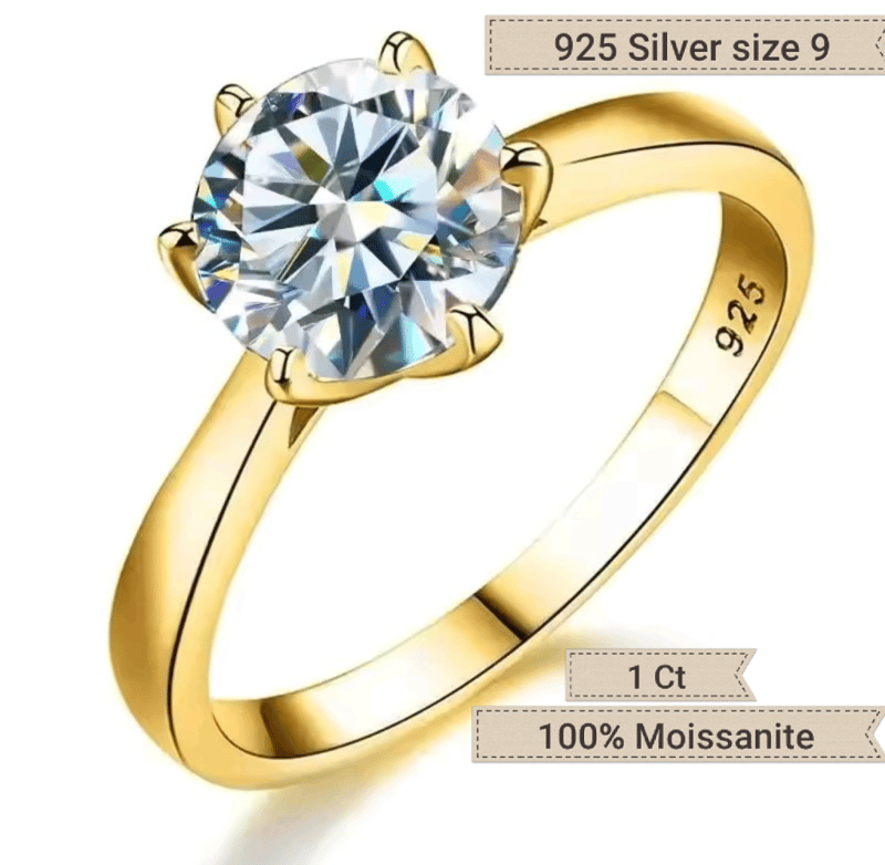 GRA CERTIFIED 1CT MOISSANITE ENGAGEMENT RING SIZE 9 925 SILVER WITH CERTIFICATE