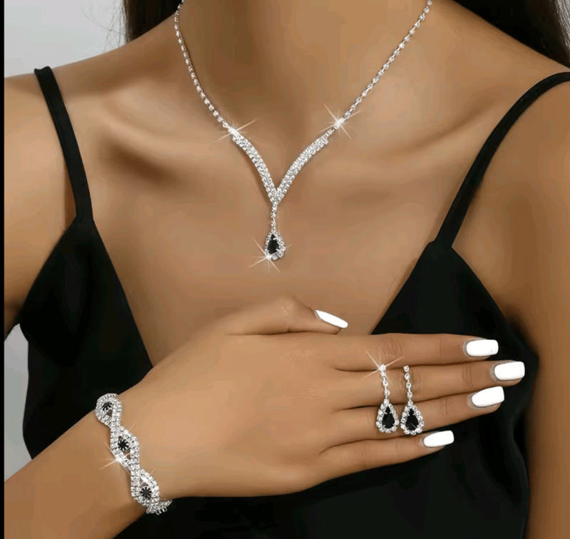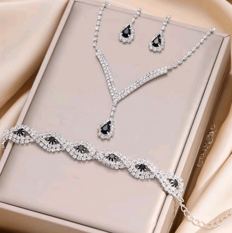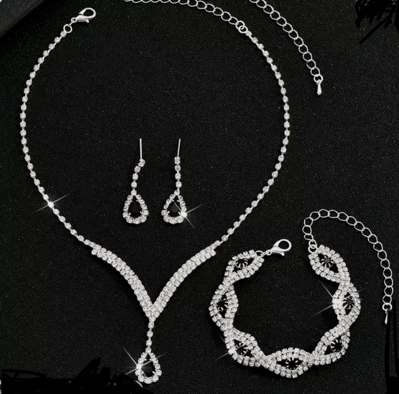 3 PIECE BRIDAL SET RHRINESTONE CRYSTALS NECKLACE EARRINGS AND BRACELET